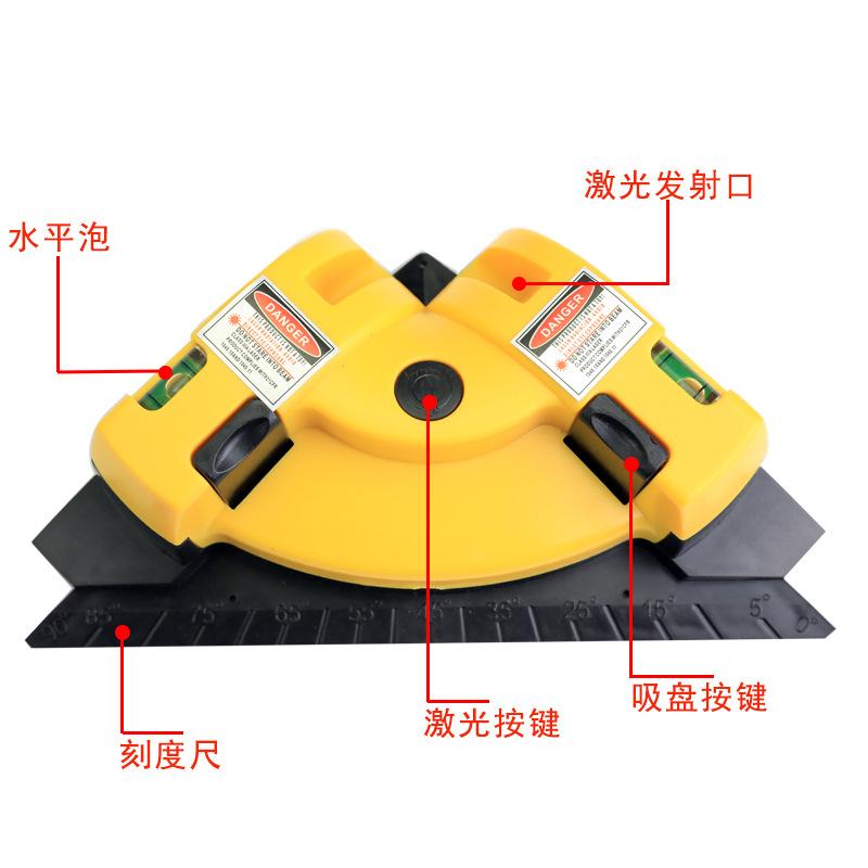 5. Esta es una regla escuadra láser especialmente diseñada para artesanos. Mantiene las características de la regla escuadra original y, al mismo tiempo, genera dos líneas de tiza láser extendidas en ángulo recto de 90°, lo que permite extender significativamente la longitud de la regla. El ángulo de marcado también se puede ajustar según la escala de medición de ángulos, lo que ahorra tiempo al medir ángulos y marcar líneas. Es una herramienta eficaz para el replanteo de ángulos.