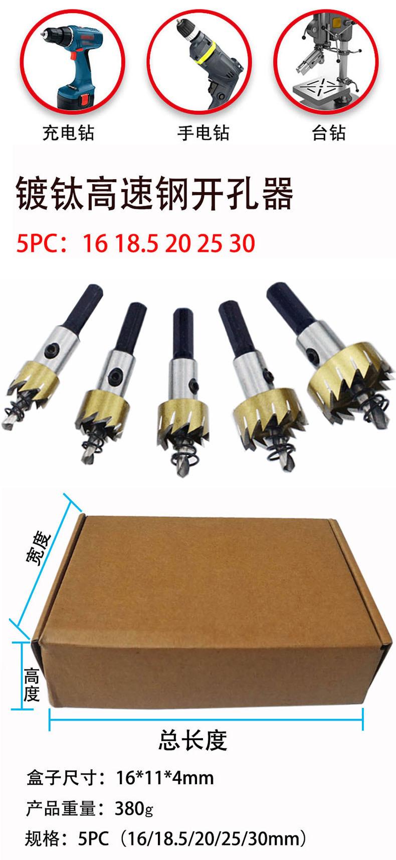 Nota especial: pontos fiscais adicionais são necessários para o faturamento. Consulte o atendimento ao cliente para obter detalhes. Obrigado.Abridor de furo de aço de alta velocidade 5PC: 16-18,5-20-25-30mm