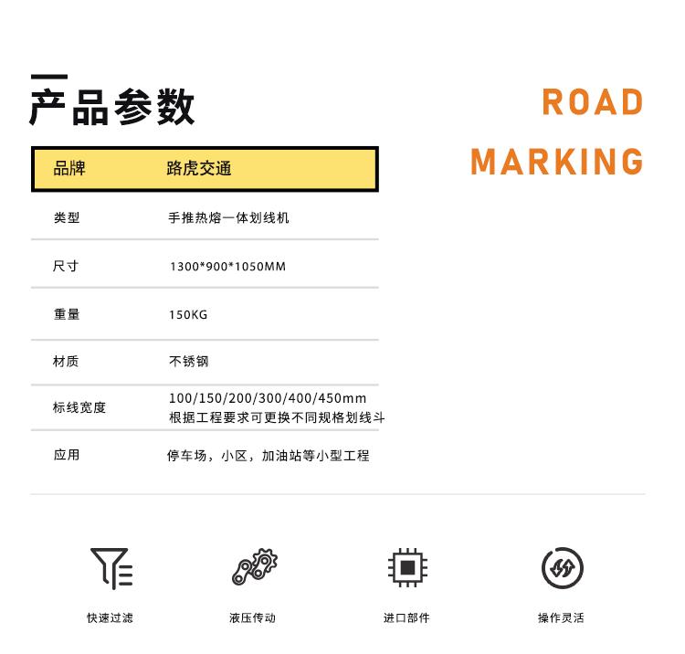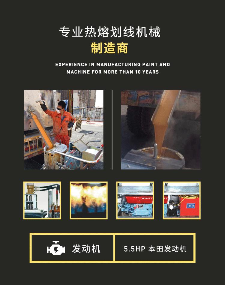 Nossa empresa vende várias máquinas de marcação rodoviária: máquina de marcação manual/elétrica de hot melt, máquina de marcação por spray a frio de dois componentes, máquina multifuncional de hot melt, etc.