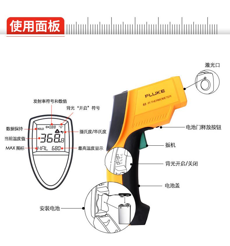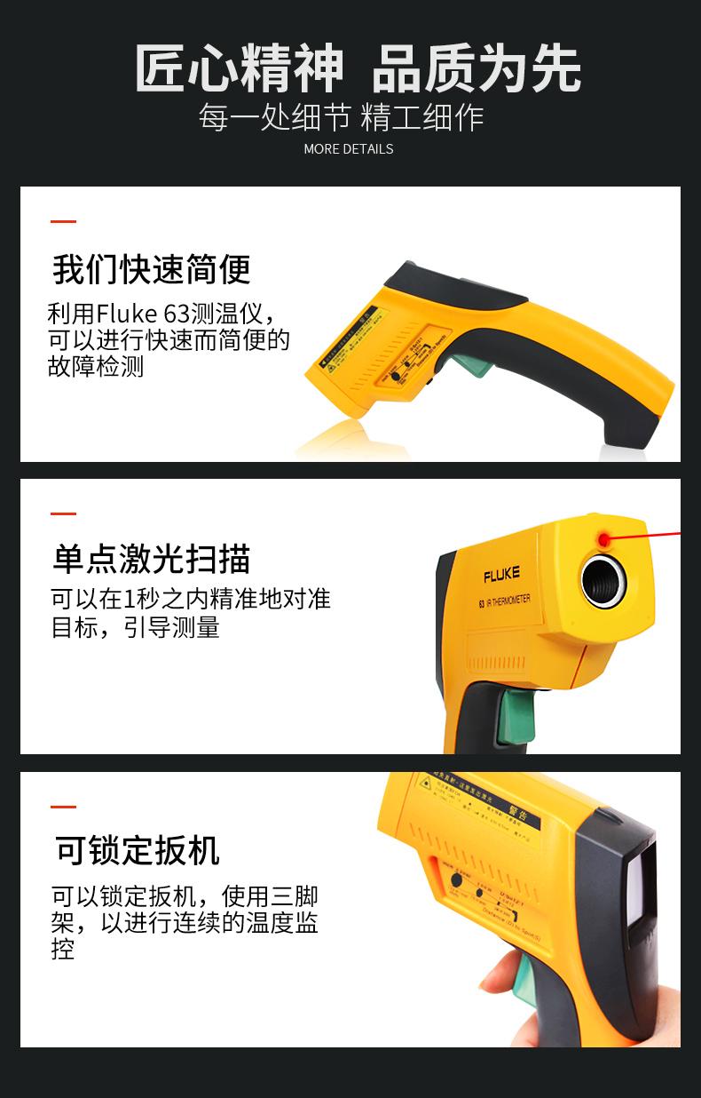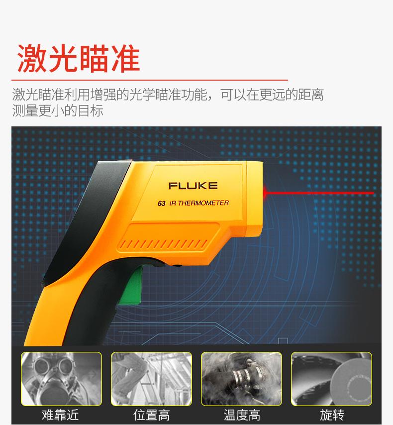 O termômetro infravermelho portátil Fluke 63 pode monitorar o status de motores elétricos e quadros de distribuição de energia, investigar problemas de aquecimento e ventilação e diagnosticar facilmente falhas automotivas.
