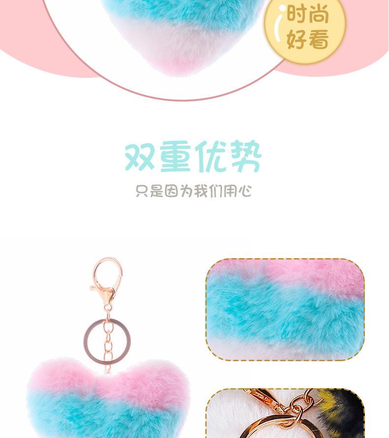 Pingente simples emendado amor pingente colorido pelúcia pêssego coração chaveiro arco-íris saco em forma de coração primavera ponto