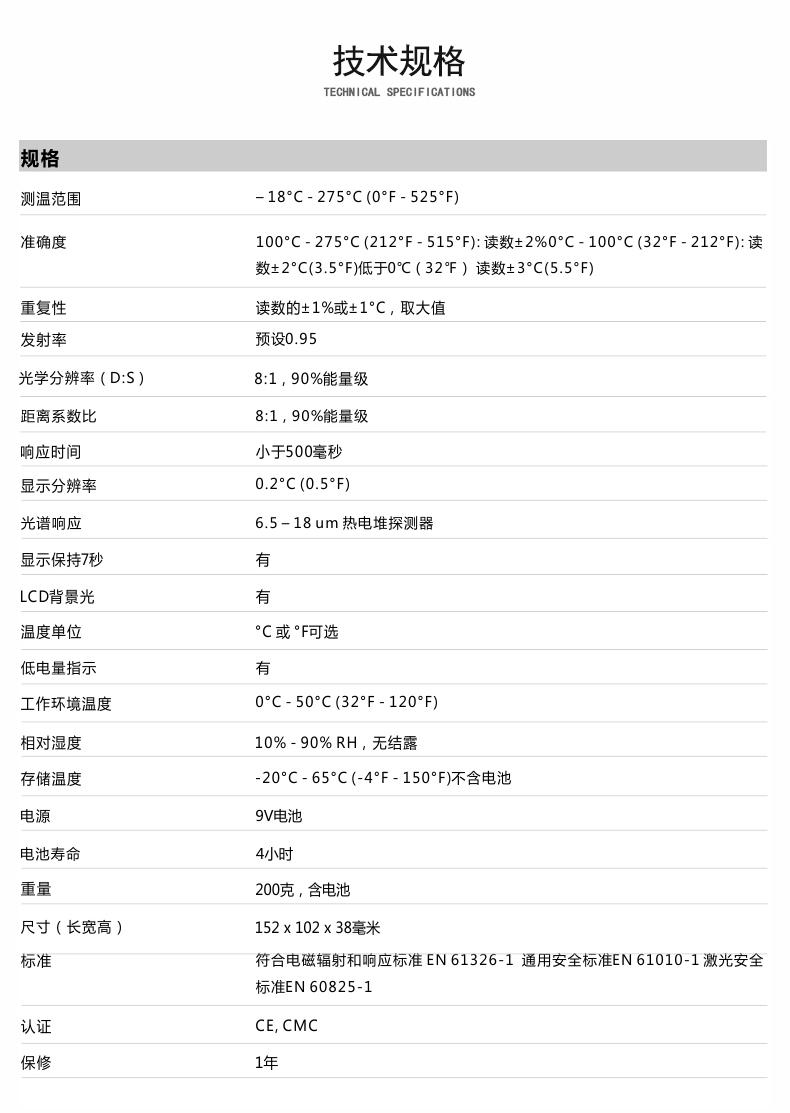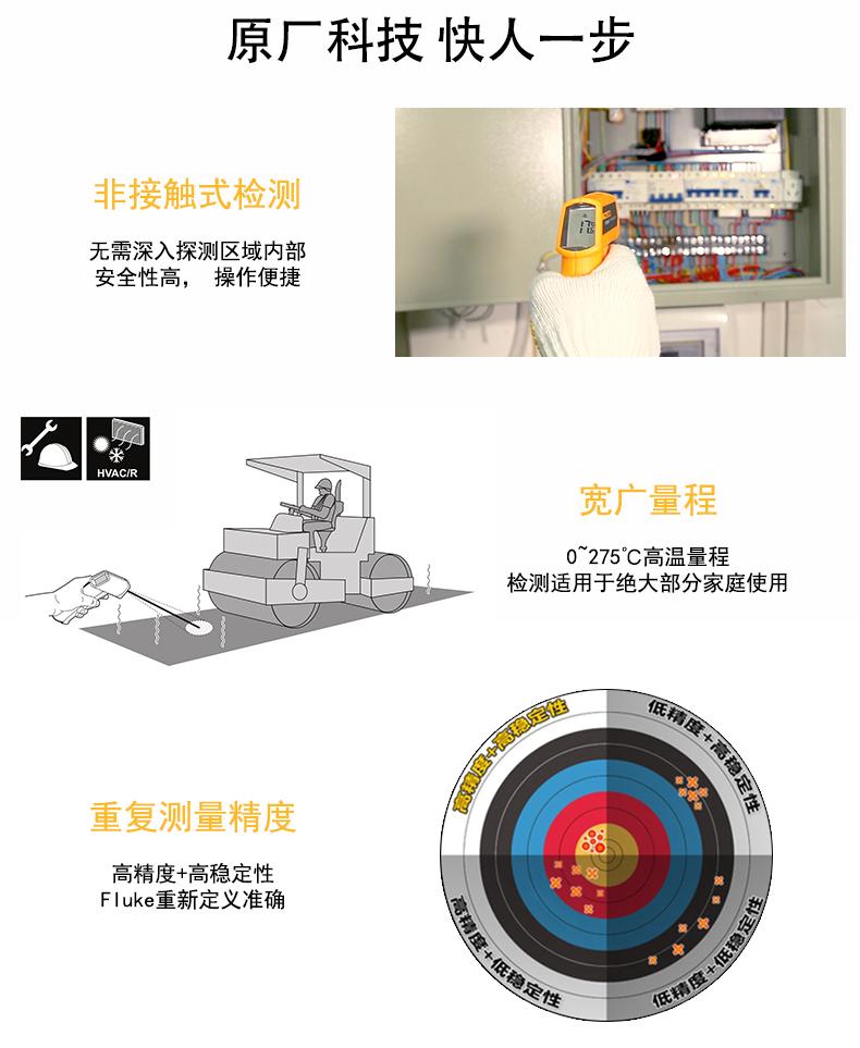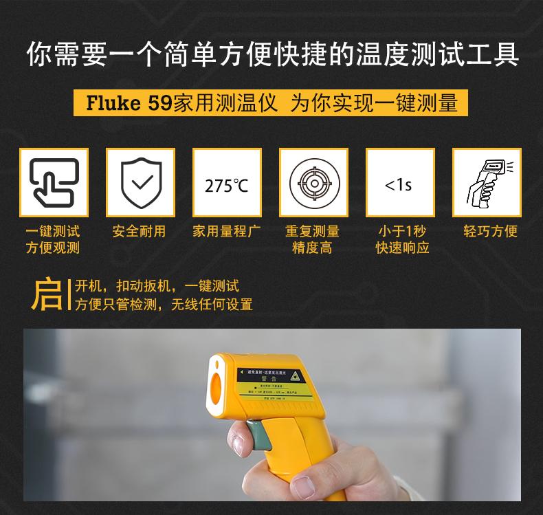 Termómetro de punto infrarrojo Fluke 59, medición de temperatura, al alcance. El Fluke 59 está diseñado para ayudar a los ingenieros eléctricos en el mantenimiento eléctrico diario y en los trabajos de puesta en marcha e instalación. Proporciona una forma conveniente y rápida de detectar rápida y precisamente la temperatura superficial de un objeto. Su diseño compacto facilita su transporte y operación por parte de los usuarios. Al mismo tiempo, el Fluke 59 hereda las características de los productos de termómetro de punto infrarrojo Fluke, como alta repetibilidad, baja dispersión, nivel de energía y alta durabilidad, lo que refleja los requisitos más altos de Fluke para la medición de temperatura y es más adecuado para la medición precisa de temperatura en entornos industriales.