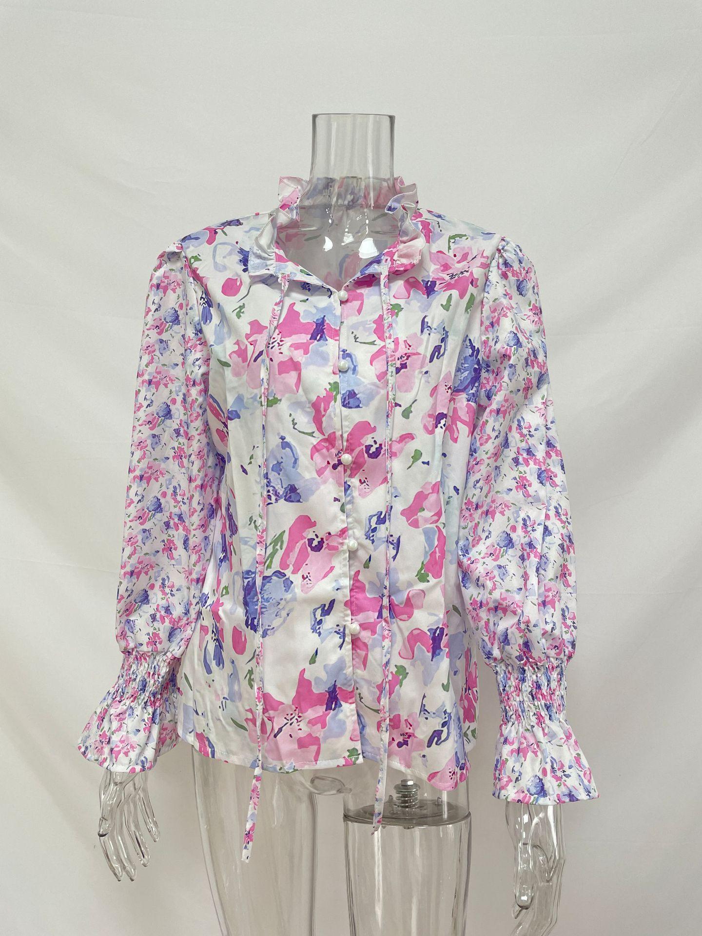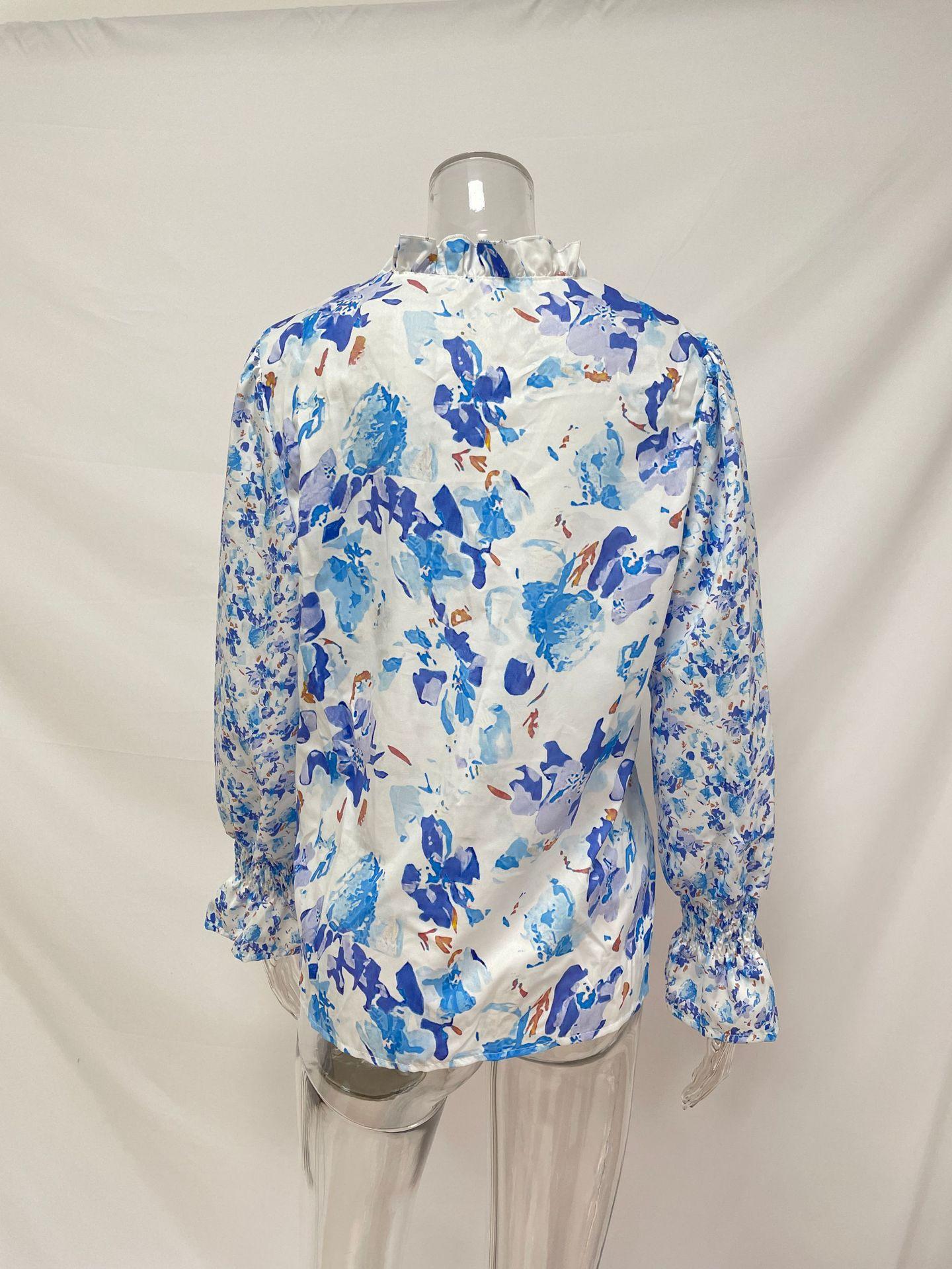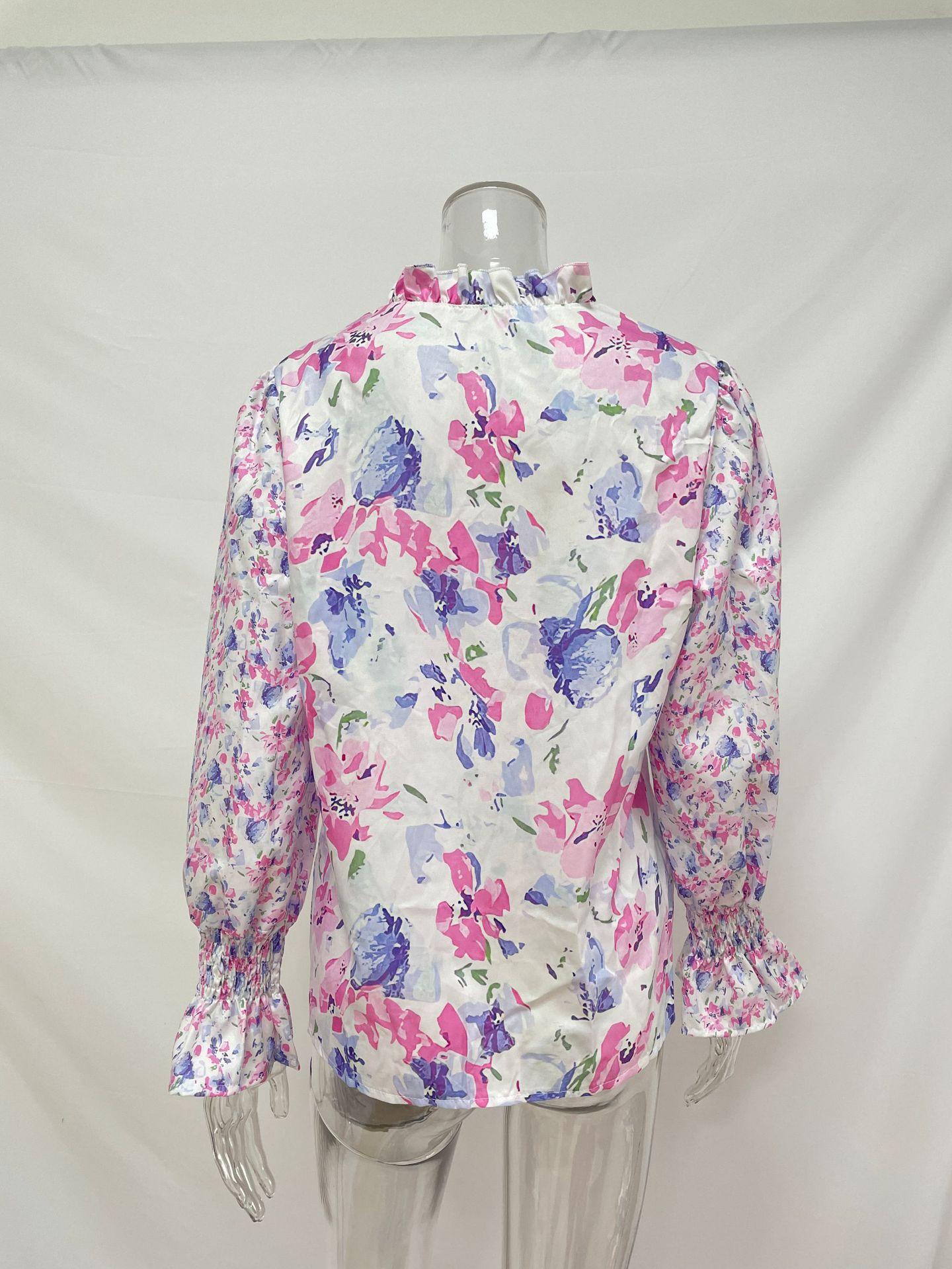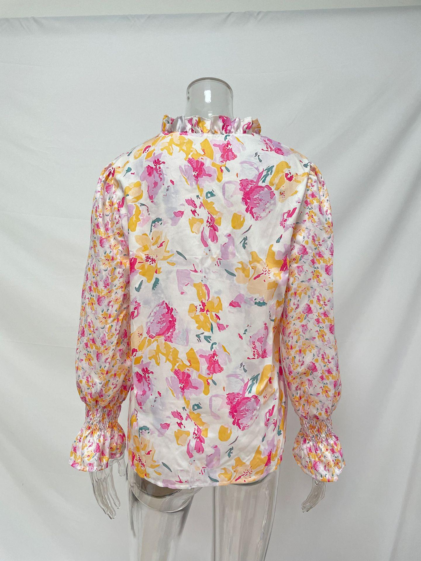 2024 outono roupas femininas europeias e americanas amazon comércio exterior transfronteiriço novo floral em torno do pescoço camisa feminina manga lanterna topo