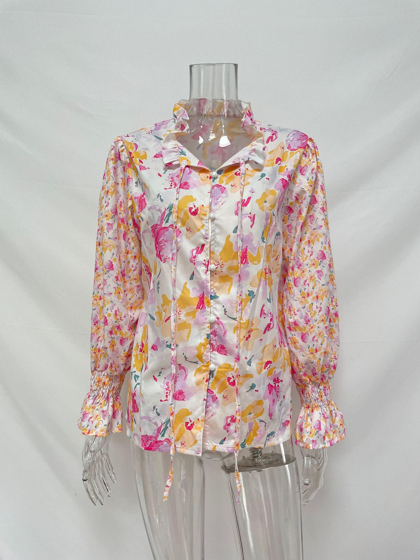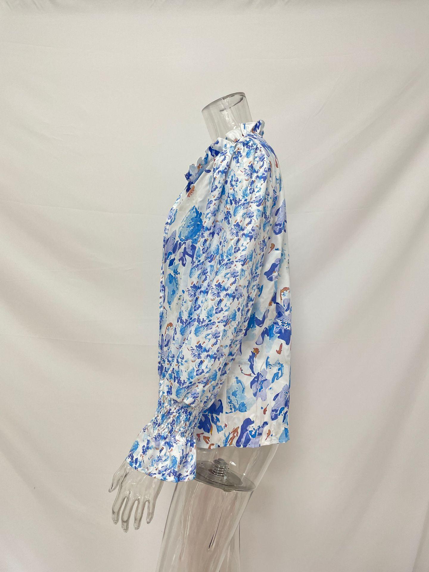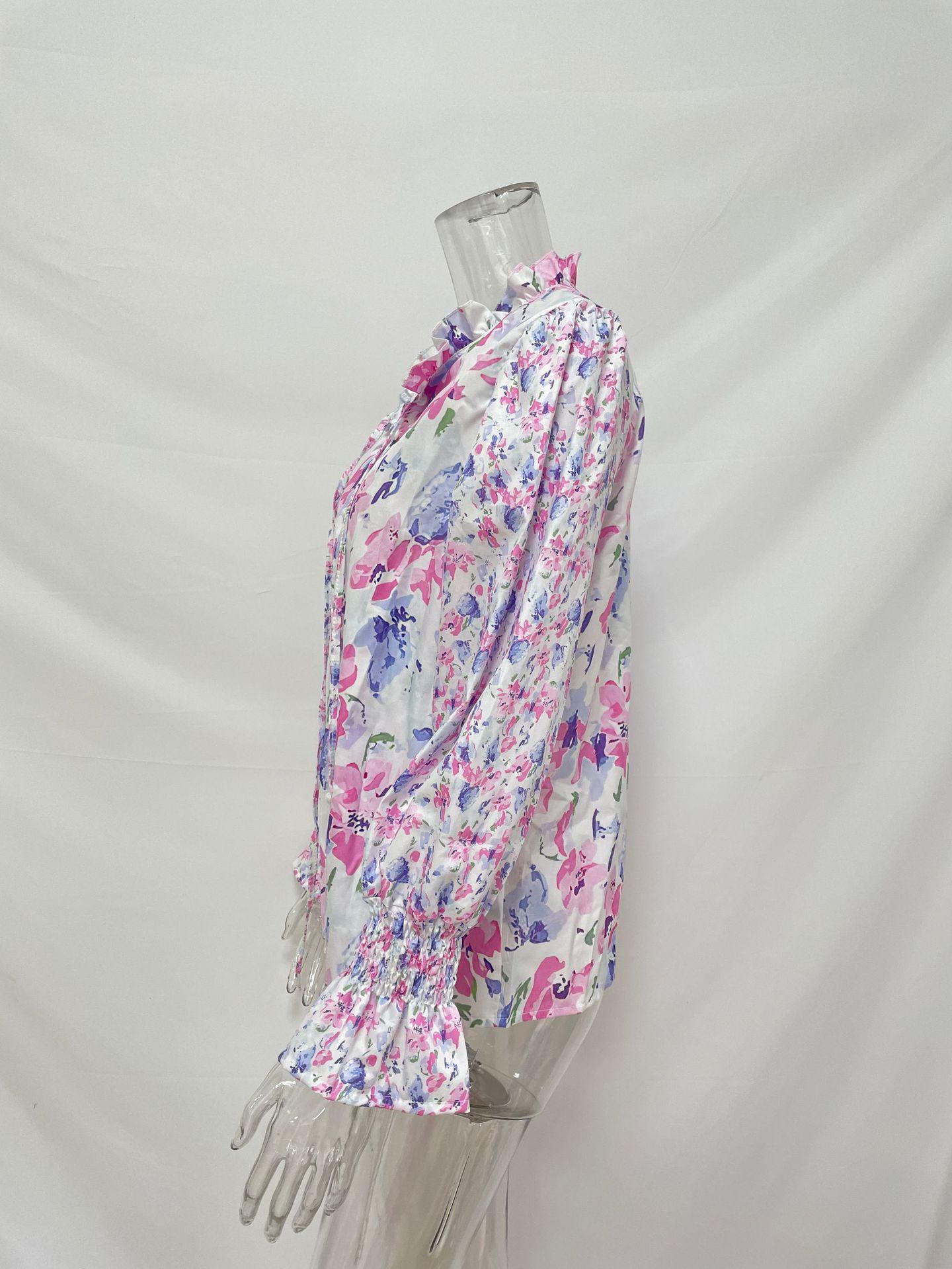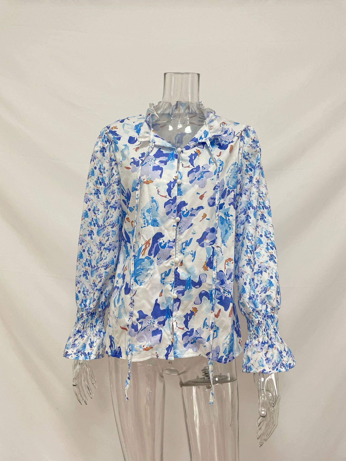 2024 outono roupas femininas europeias e americanas amazon comércio exterior transfronteiriço novo floral em torno do pescoço camisa feminina manga lanterna topo