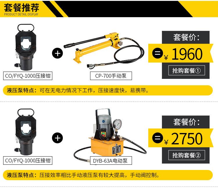 Yuhuan Jimu Tools FYQ-1000 pinzas hidráulicas divididas pinzas de crimpado nariz de cobre y aluminio eléctrica crimpado de presión firme