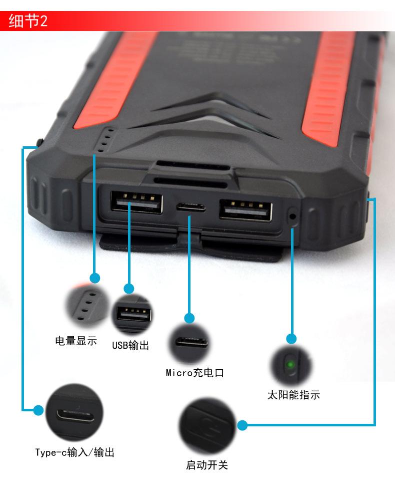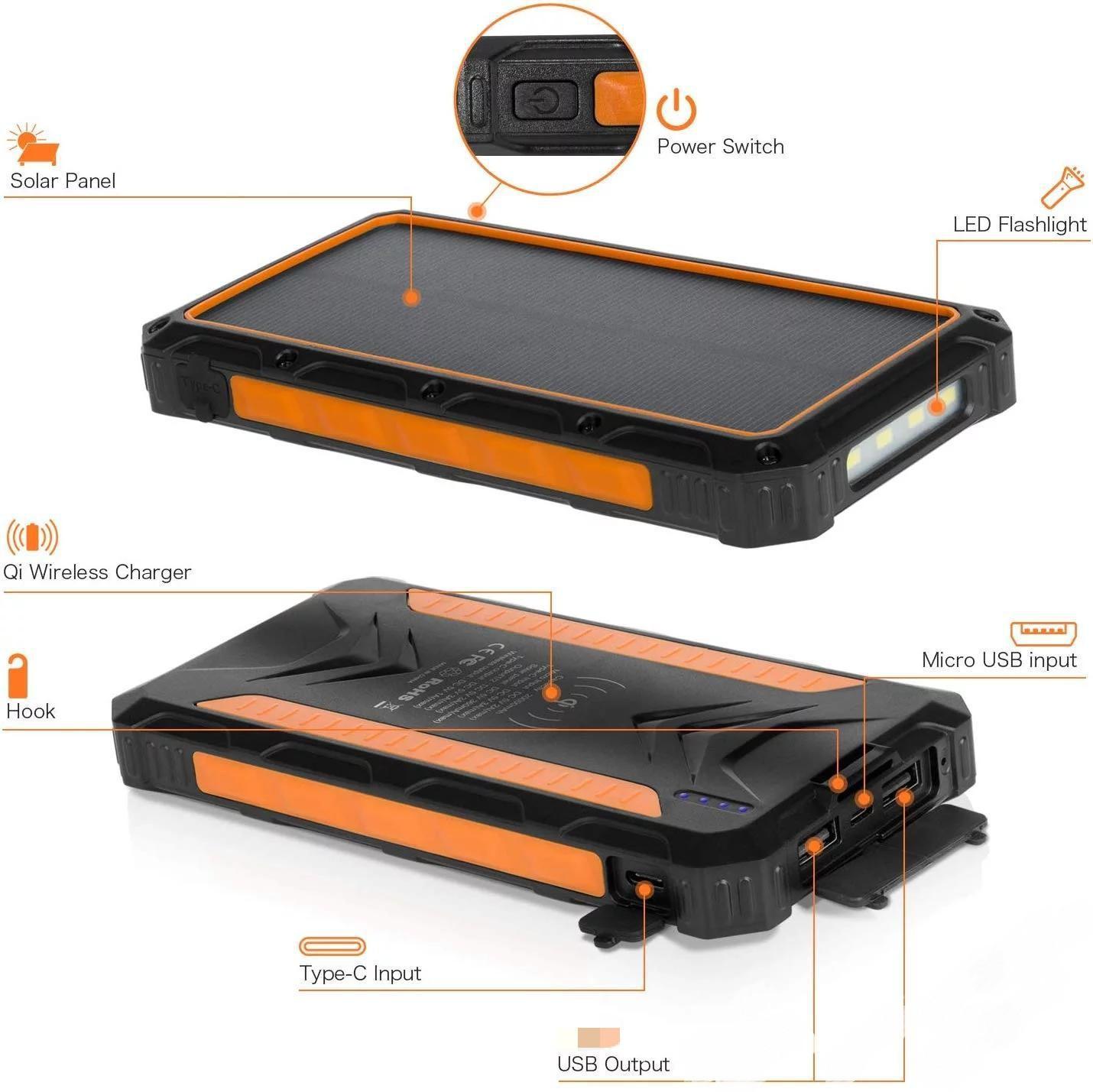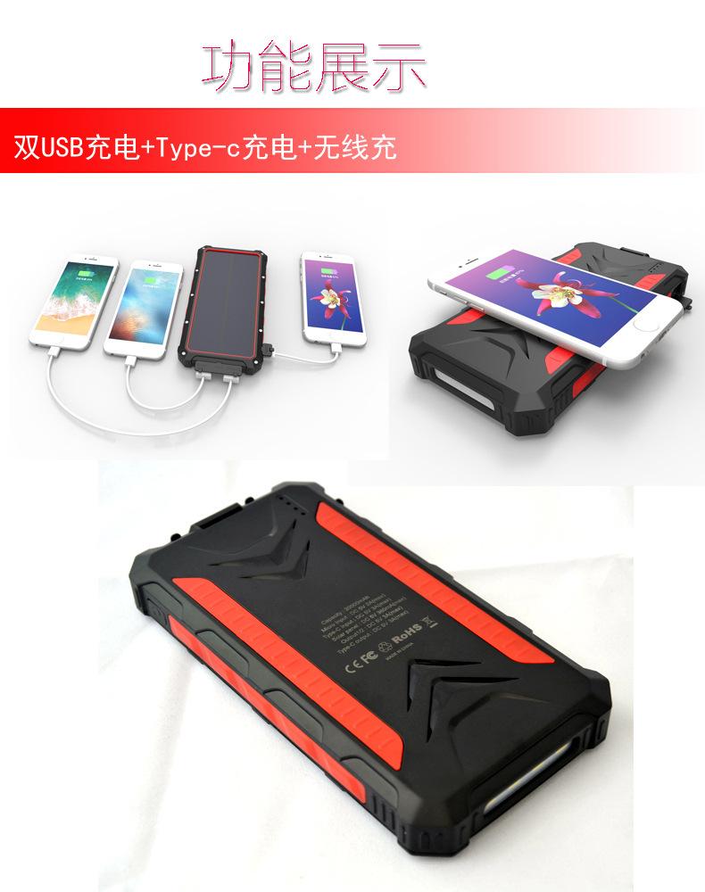 Banco de energía solar inalámbrico de venta caliente transfronteriza cargador inalámbrico solar 36000MAH con luz de camping
