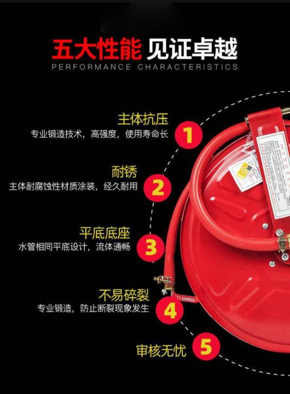 É composto por válvulas, tubulações de entrada, raios, estruturas de suporte, balancins, mangueiras e pistolas pulverizadoras. Geralmente usa água, pó seco ou espuma como agente extintor e pode implantar rapidamente mangueiras para pulverizar agente extintor para extinguir o incêndio. Geralmente é instalado em caixas de hidrantes internas e é um novo tipo de dispositivo fixo interno de combate a incêndio.