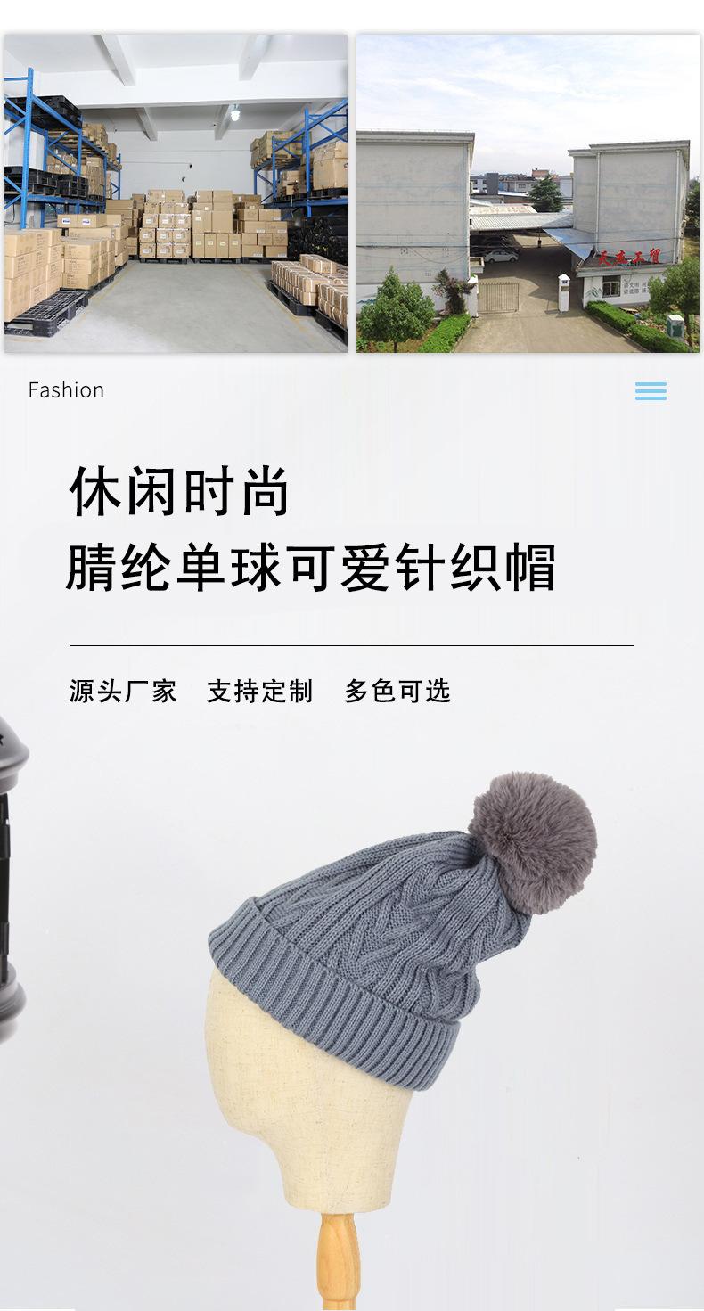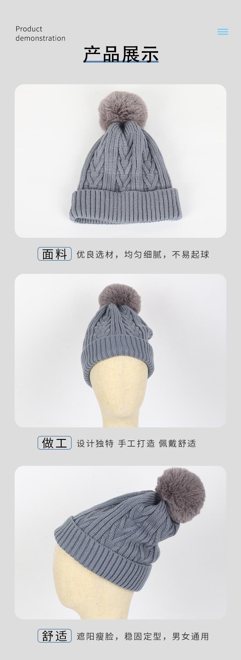 [Nombre]: Gorro tejido lindo de acrílico con pompón para otoño e invierno [Material]: Acrílico 【Número de artículo】:M20006 【color: gris