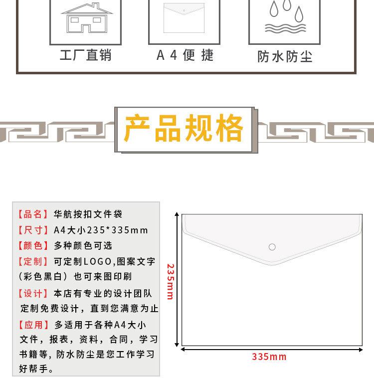 Bolsa para documentos A4 transparente con botón a presión