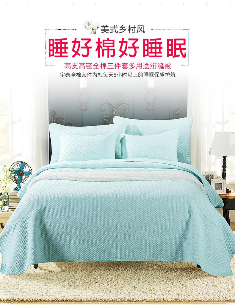 Comércio exterior acolchoado capa de cama conjunto de três peças estilo americano puro algodão simples bordado colcha lavada verão colcha de cama atacado