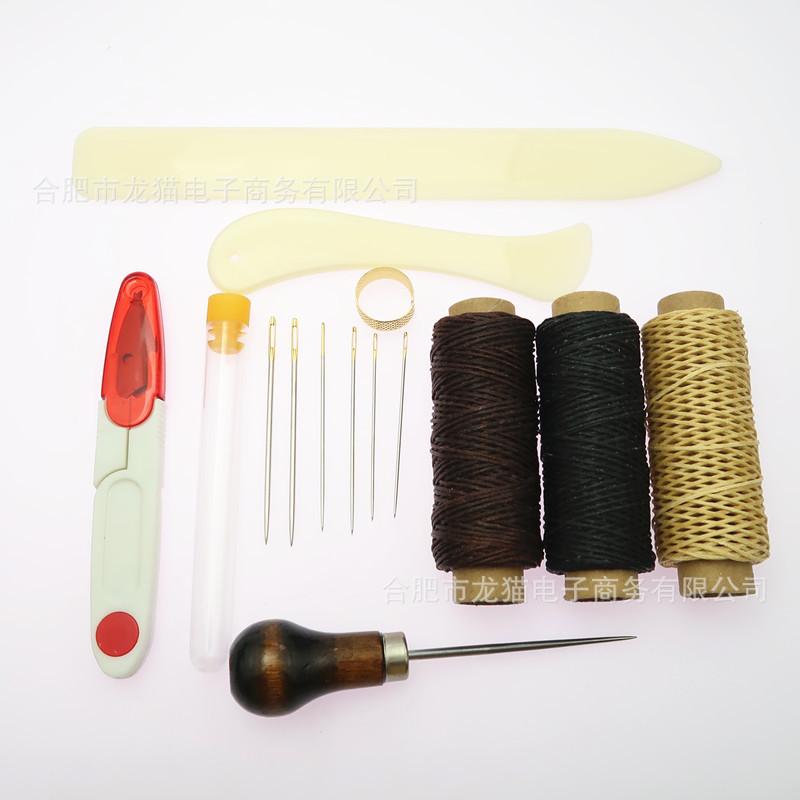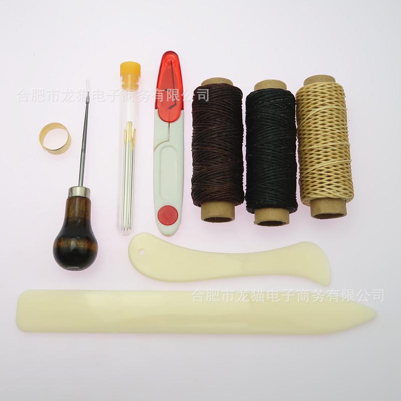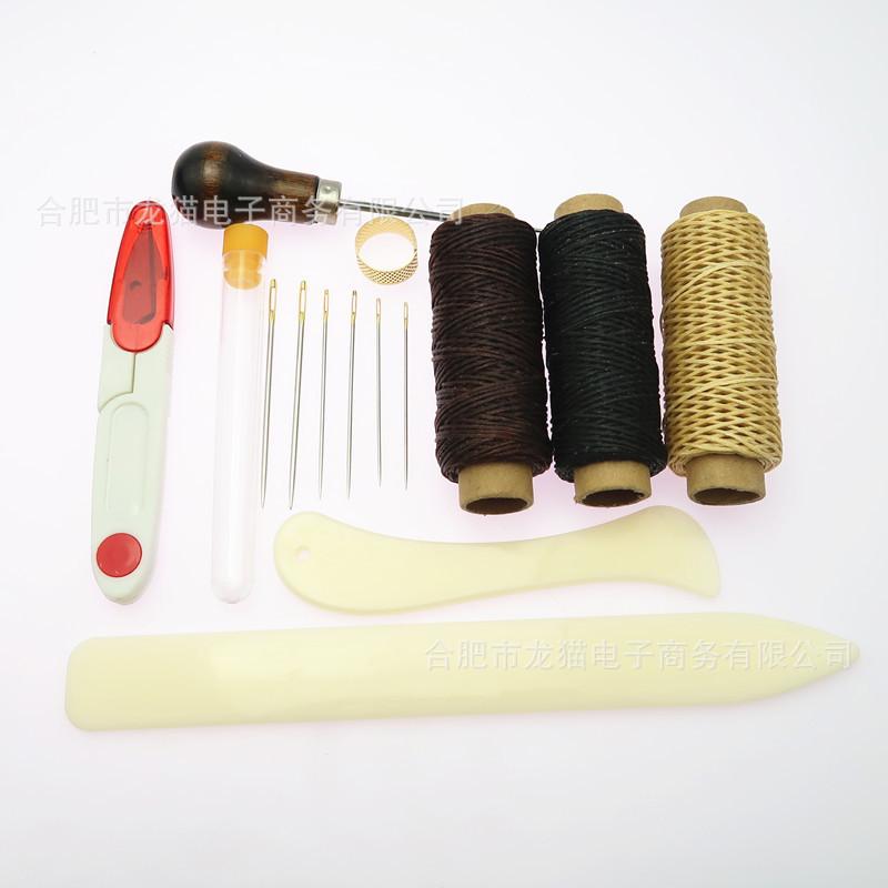 3 piezas de hilo encerado 150D 50m: color natural + negro + café oscuro