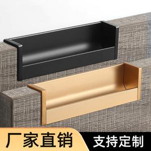 Tirador de puerta de cajón de armario extra largo, simple y de corte largo, negro, invisible, oculto, tira larga, dorado