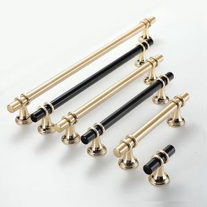 Tirador de puerta de armario de lujo americano, de un solo orificio, color negro, con manija sólida, moderno, sencillo y de alta gama, dorado