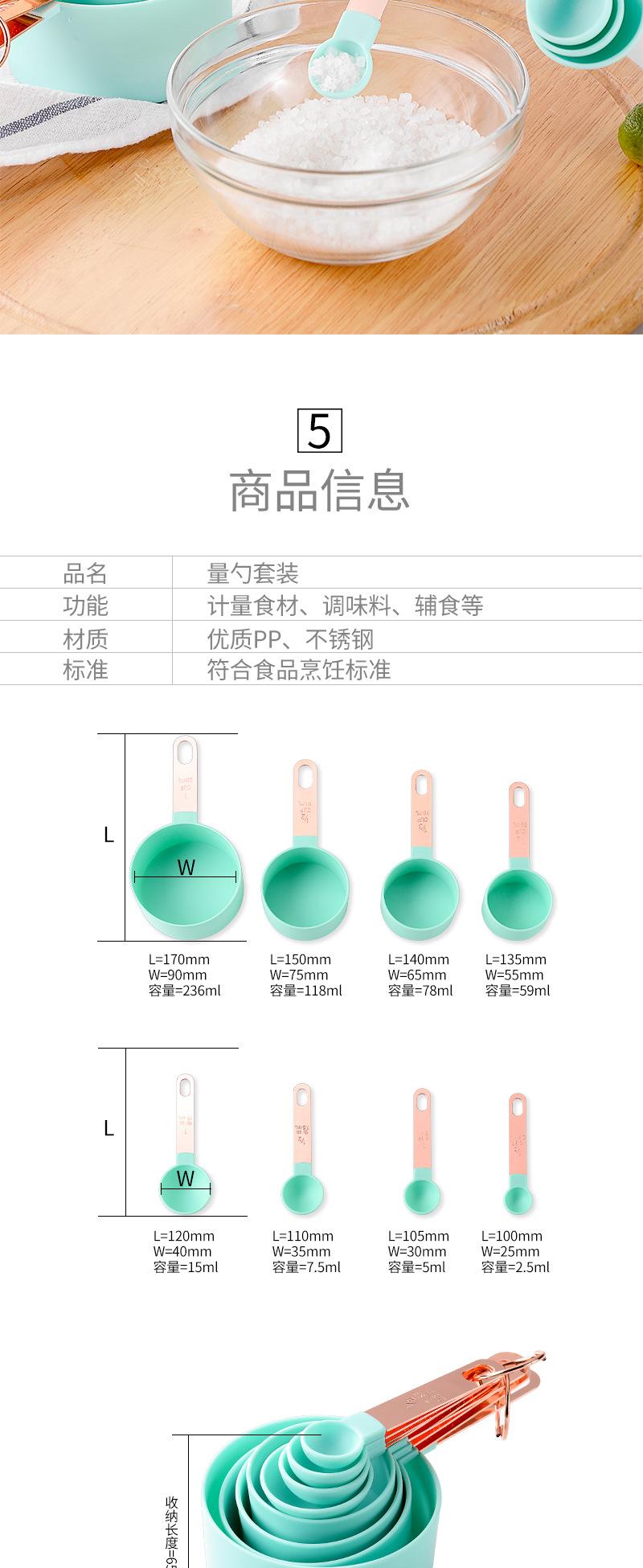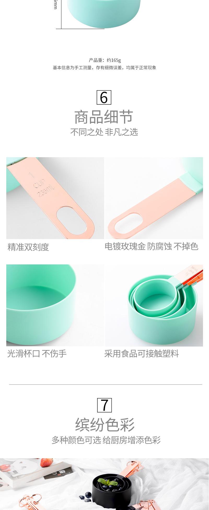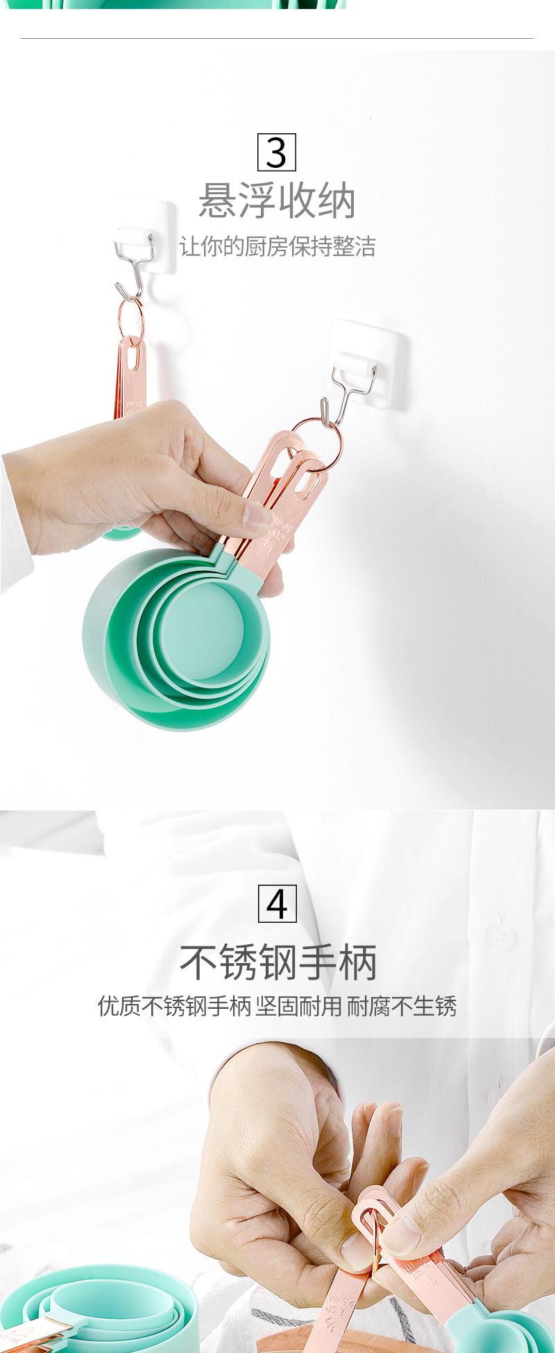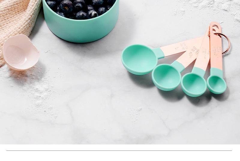 Alça de aço inoxidável transfronteiriça copo de medição colher de medição de ouro rosa copo de medição de plástico conjunto de 8 peças conjunto de colher de medição de cozimento doméstico