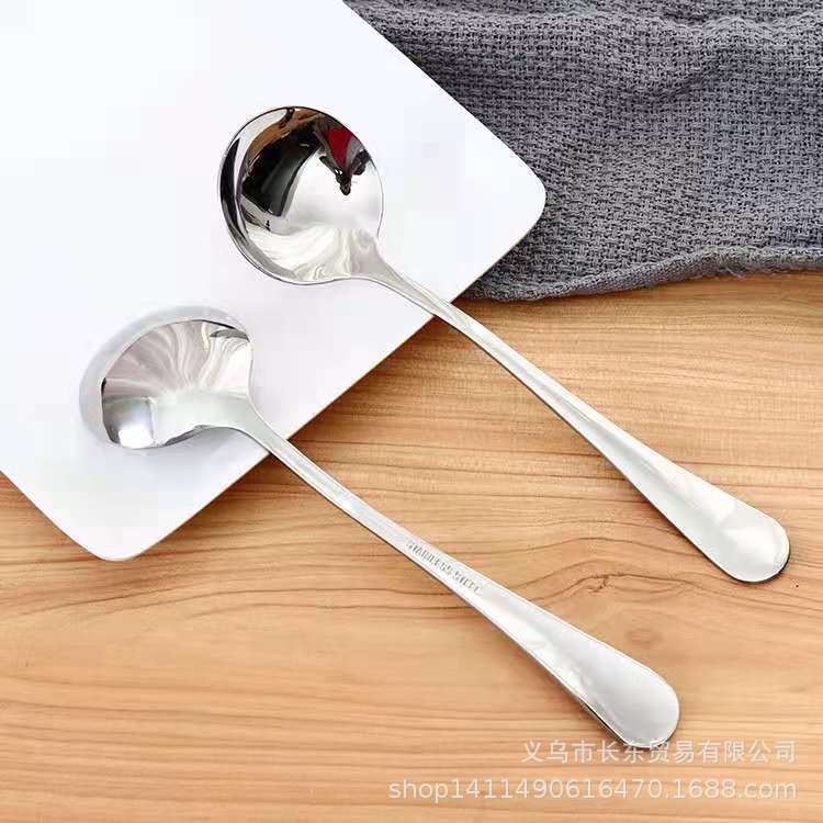 | Cuchara redonda grande pulida a espejo/N.º 1 | La longitud total es de aproximadamente 20.3 cm, el ancho de la cuchara es de aproximadamente 4 cm, la longitud del mango es de aproximadamente 14.2 cm, y la longitud de la cuchara es de aproximadamente 5.5 cm | Alrededor de 34g/pieza | Acero inoxidable magnético 410 |