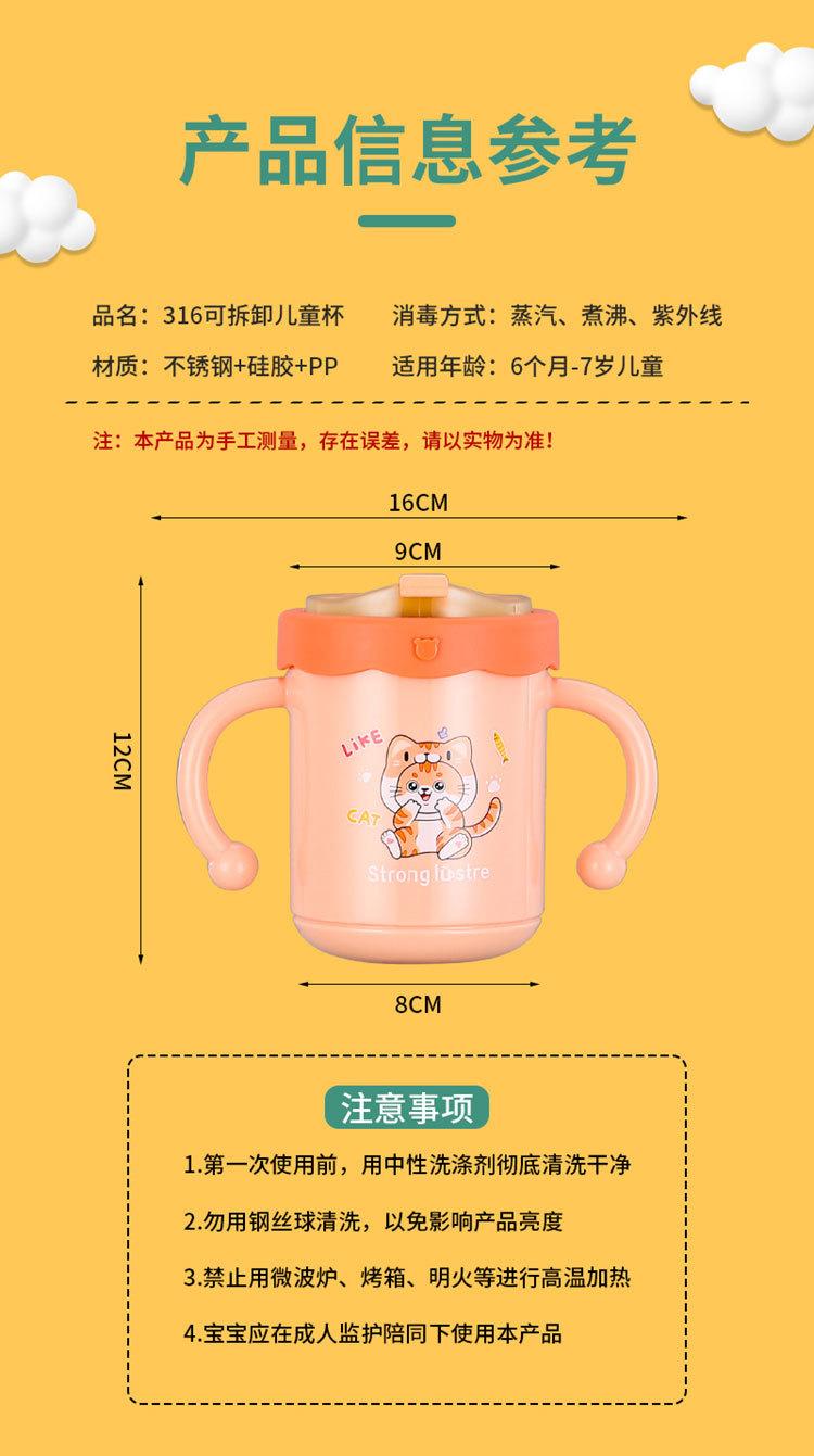 Material: Revestimiento de acero inoxidable 304/316 de grado alimenticio, carcasa de plástico PP respetuoso con el medio ambiente, popote de silicona