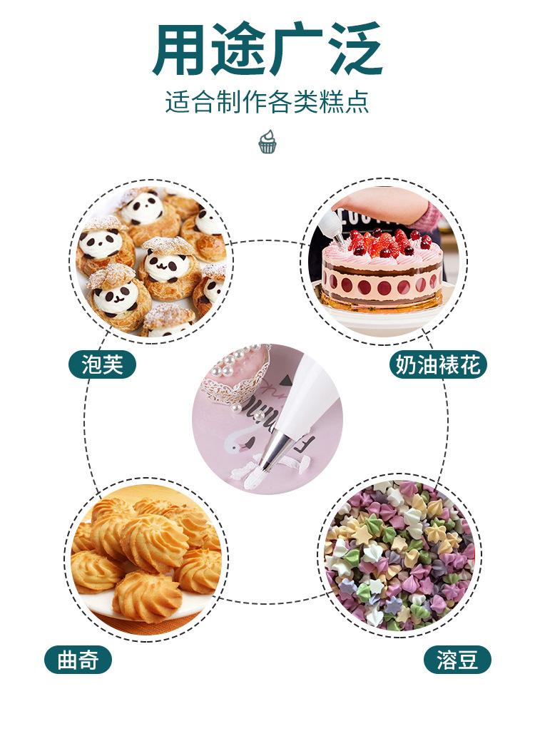 Descrição: 14 filamentos espessados, 10 unidades/100 unidades regulares em dois tamanhos, cor transparente, reutilizável; usado para decoração de bolos, biscoitos, folhados, bolos caseiros, etc.