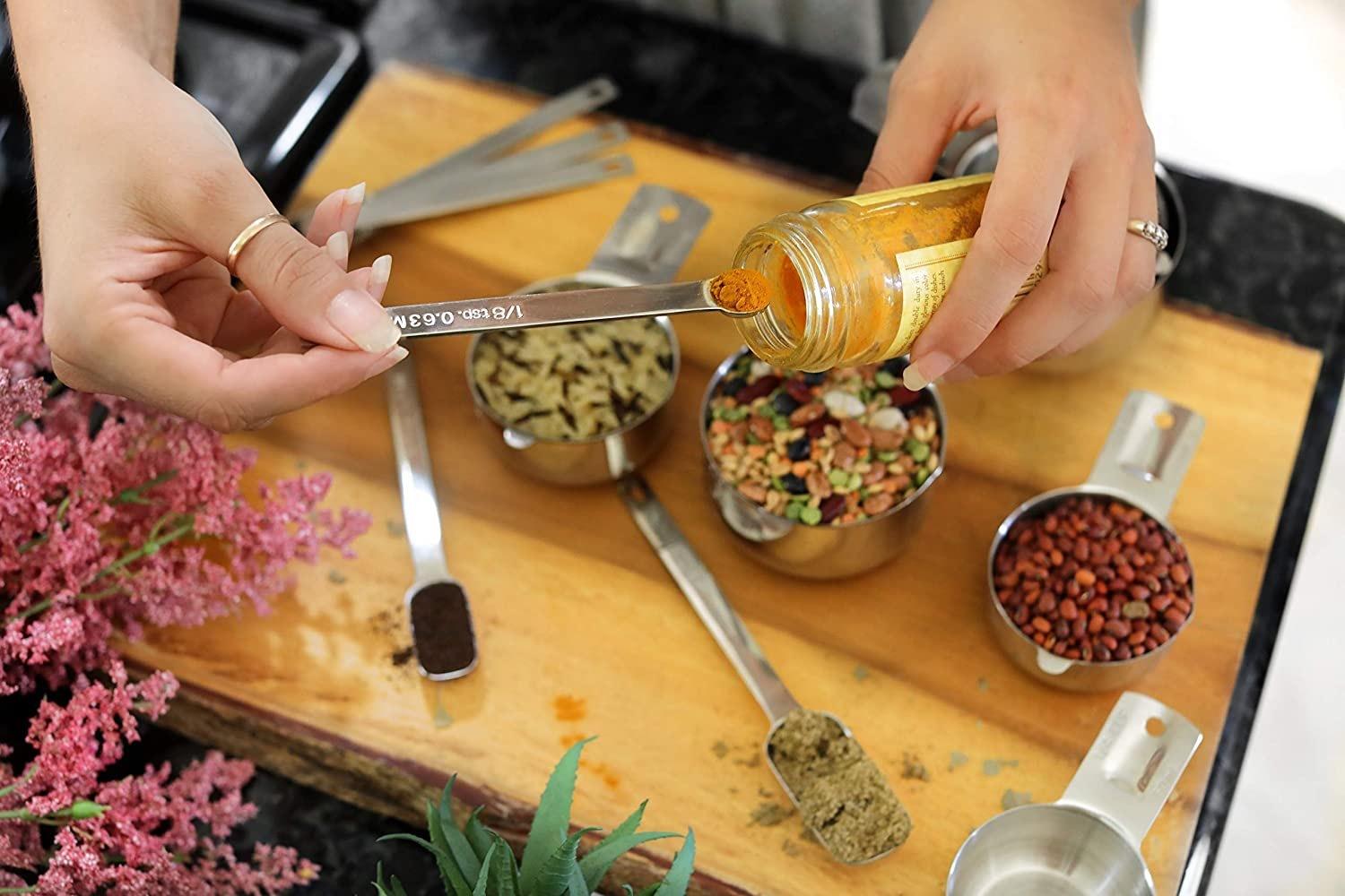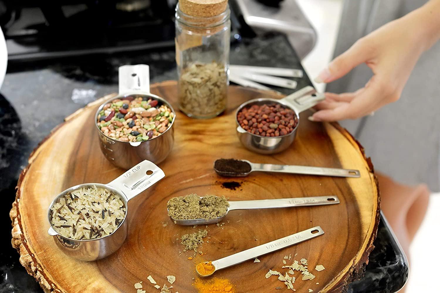 Juego de tazas medidoras: 0.7mm de espesor 398g Cuchara medidora cuadrada: 1.5mm de espesor 165g