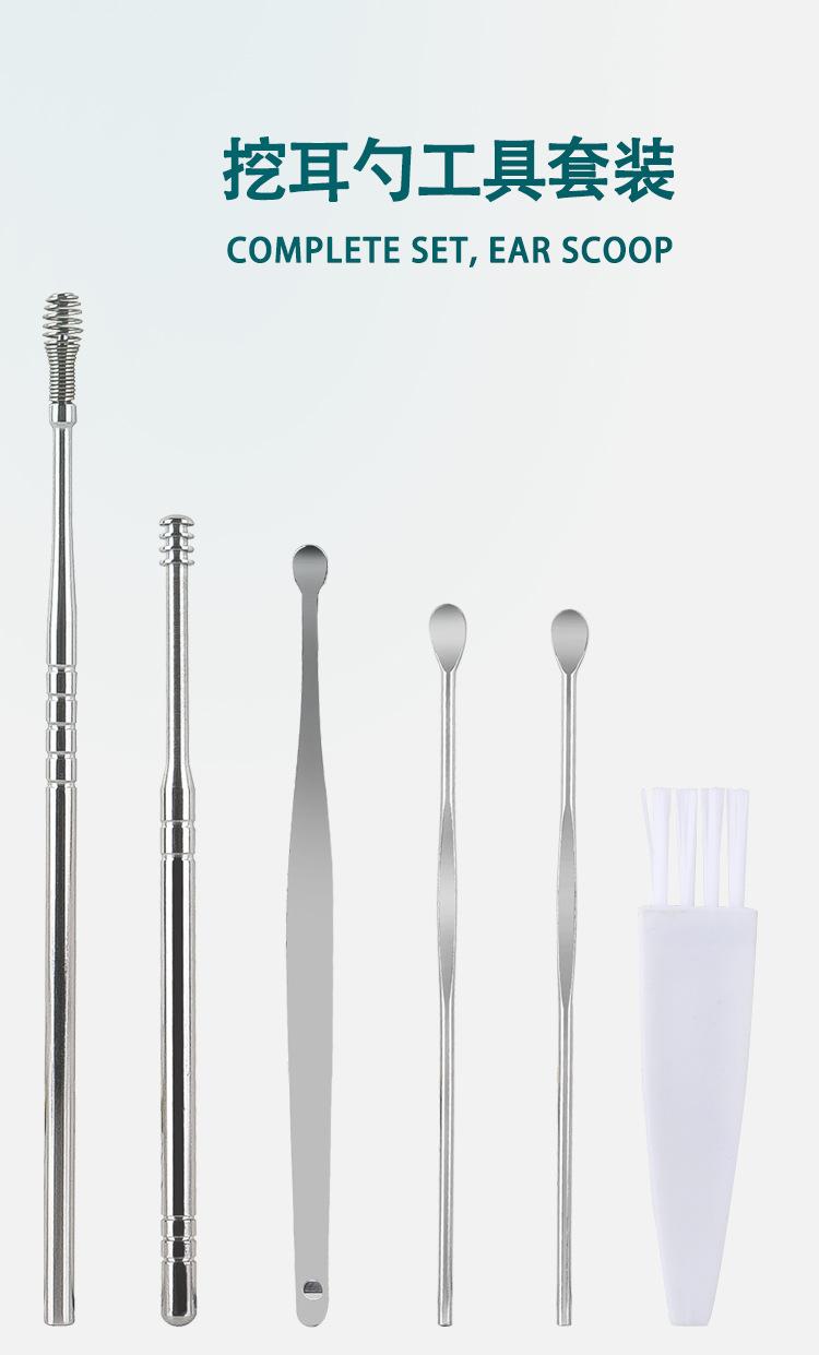 Conjunto de 6 peças de palheta de ouvido, fabricante espiral, mola, conjunto de ferramentas de limpeza de ouvido, palheta de ouvido doméstico