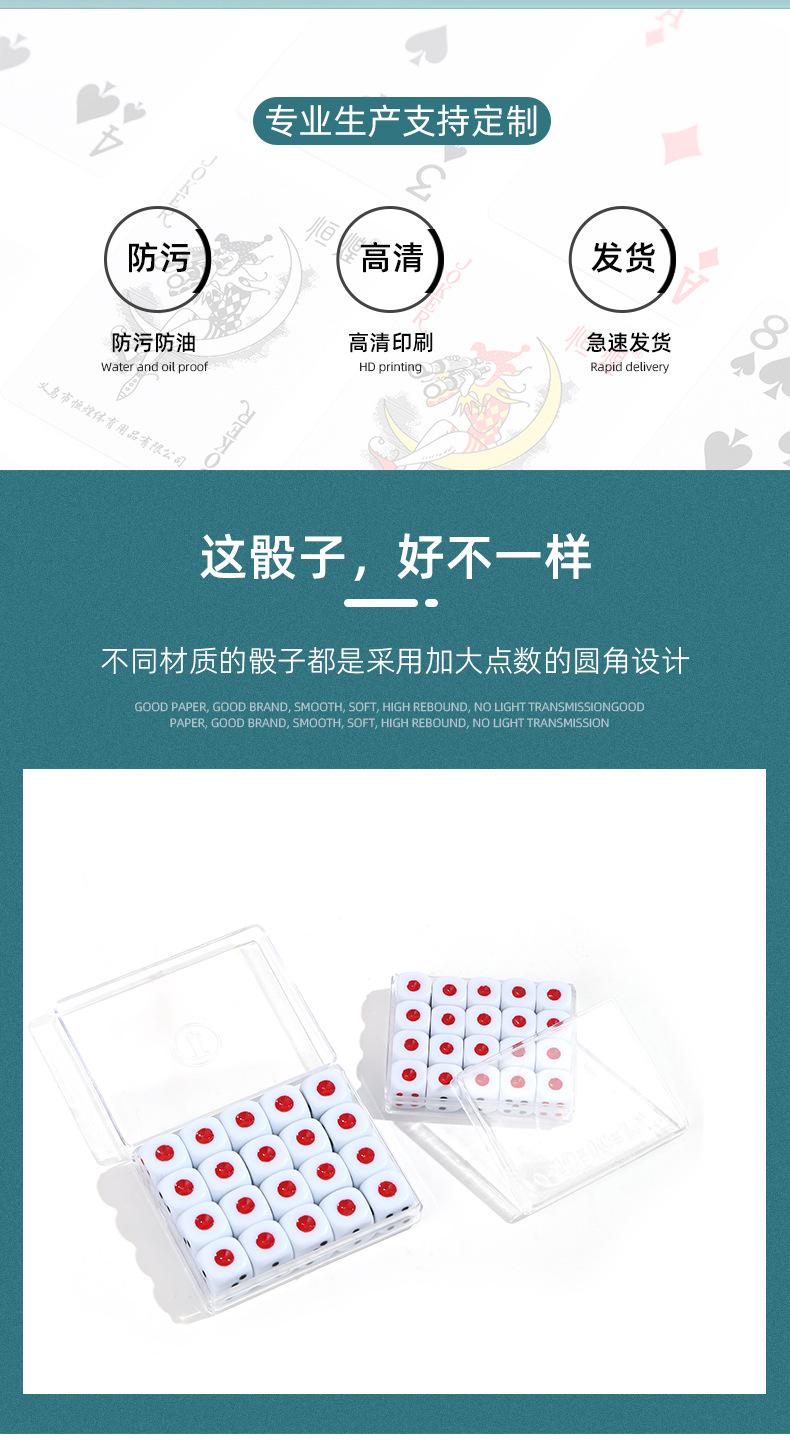 ¡Este dado viene en una caja de 200 piezas, no se deben separar!¡Hola!Nuestra empresa se dedica principalmente a la producción de una serie de productos de entretenimiento y ocio, como póquer, póquer de plástico, póquer publicitario, póquer de regalo, póquer mágico, mahjong, máquinas de mahjong, dominó, fichas, dados, cubiletes, etc. Taobao: