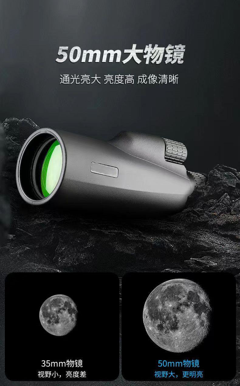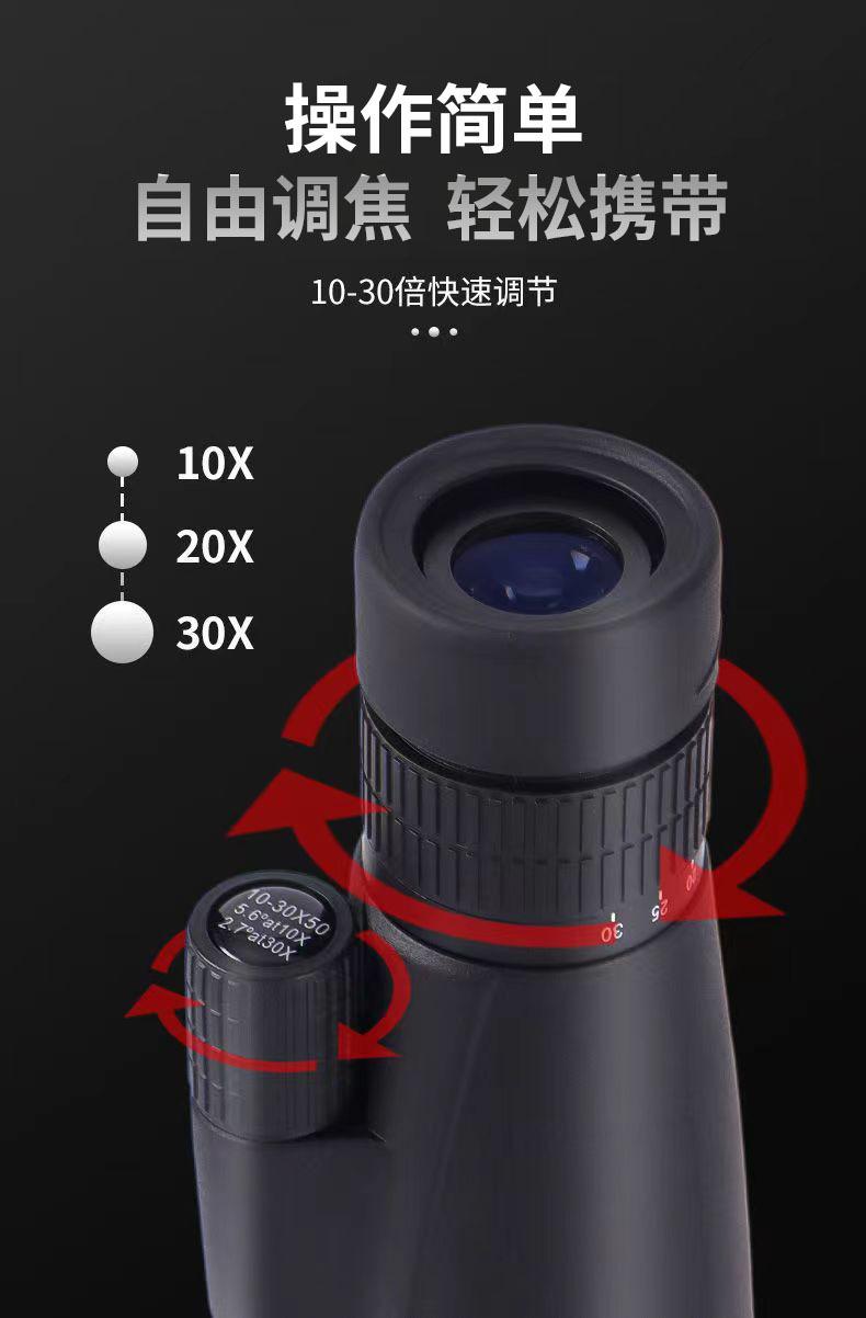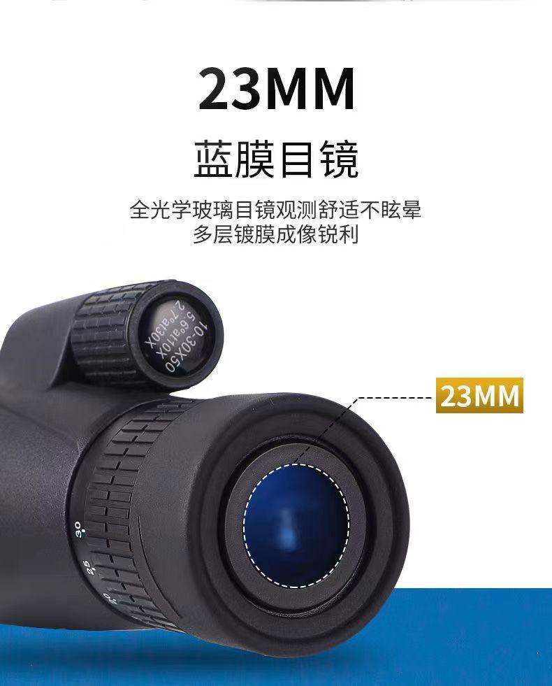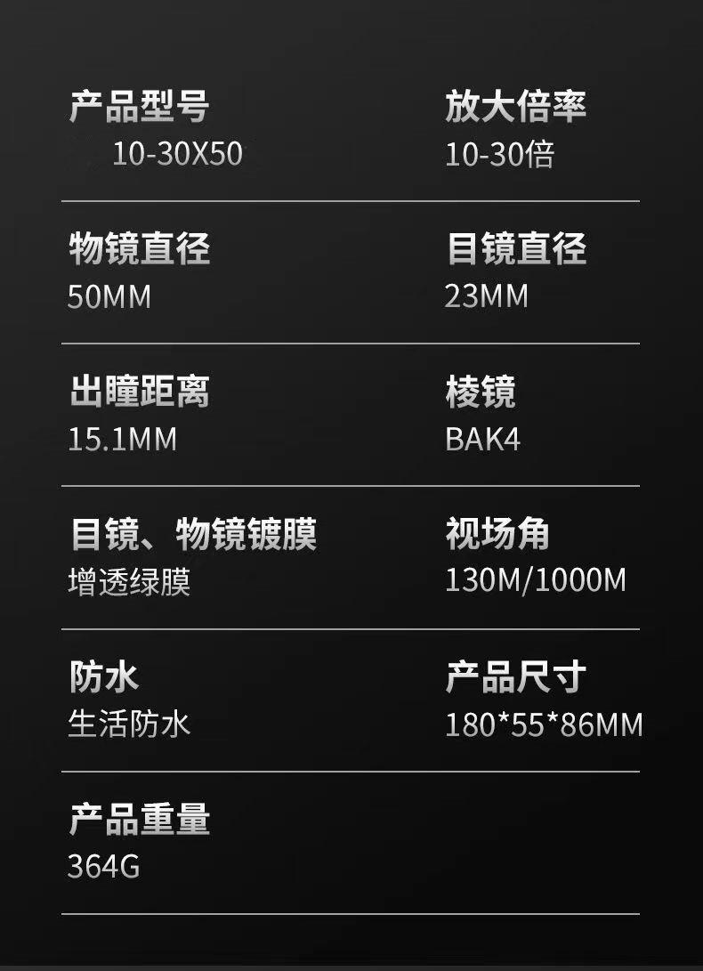 1. Parâmetros reais, ampliação de 10-30. O diâmetro efetivo da lente objetiva é de 50 mm e o diâmetro efetivo da ocular é de 23 mm. A lente objetiva é grande, a quantidade de luz que entra é maior e a visualização é mais brilhante e clara;