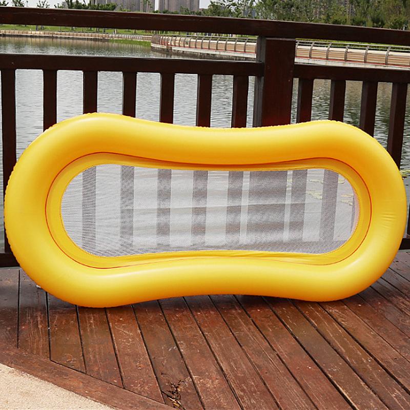 El borde inflable de este flotador de red inflable está hecho de PVC, y la parte central está hecha de malla de nailon. El tamaño de la malla es de aproximadamente 105*36cm