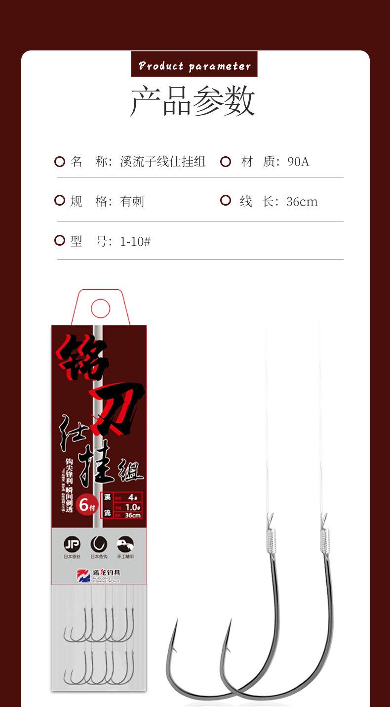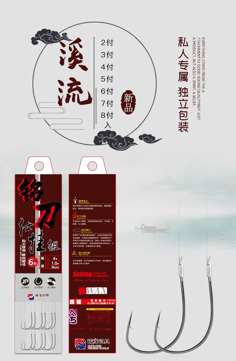 Al hablar del anzuelo de pesca, nos referimos a la pesca tradicional, con caña larga y línea corta. El anzuelo de pesca generalmente se compone de una línea principal atada directamente a la ranura del anzuelo con el color base, y el flotador utiliza principalmente flotadores de siete estrellas y flotadores fijos. Al estar integrados el anzuelo y el plomo, cuando el pez muerde el anzuelo, la señal de pesca se envía principalmente al flotador. Solo cuando la carpa herbívora, la carpa negra, el besugo y otros peces grandes muerden el anzuelo, el flotador mostrará un flotador negro. El anzuelo de pesca es muy común y es la herramienta principal para la pesca salvaje. Una caña de mano con un conjunto de pesca tradicional permite la pesca salvaje en entornos naturales complejos. Además, ofrece mayor flexibilidad de maniobrabilidad. Las ventajas de pescar en estanques de hierba son incomparables con la pesca con plomo suspendido. Además, el anzuelo de pesca casi siempre tiene púas. Una vez enganchado, el pez tiene dificultades para soltarse del anzuelo debido al efecto de las púas, lo cual es muy popular entre pescadores de mayor edad y principiantes.