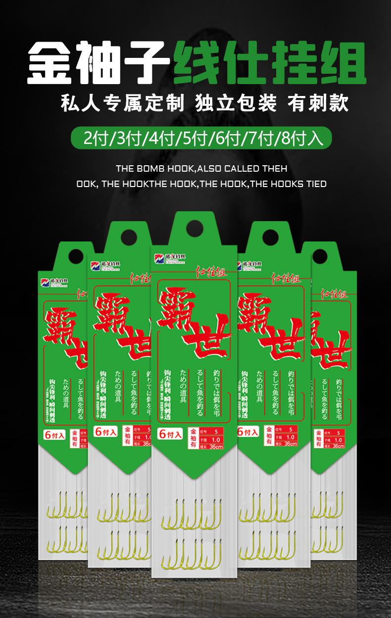 Ganchos de bomba, também conhecidos como ganchos explosivos, ganchos de grupo, ganchos de grupo, os mais comuns são do tipo mãe e filho, ganchos de bolo de feijão e ganchos voadores. Os ganchos para bombas são geralmente agrupados em 6 peças, a maioria feitas de linha trançada de náilon como sublinhado. É usado principalmente para pesca de fundo com vara fundida e anzol para capturar peixes maiores. É um anzol de pesca eficaz. É muito popular entre os adeptos da pesca em águas naturais como represas e lagos com amplas áreas e águas profundas.