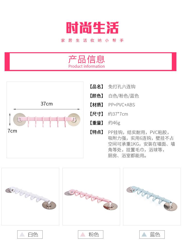 Nombre: Montado en pared sin costuras de 6 ganchos
