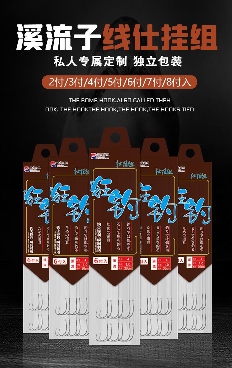 Ganchos de bomba, também conhecidos como ganchos explosivos, ganchos de grupo, ganchos de grupo, os mais comuns são do tipo mãe e filho, ganchos de bolo de feijão e ganchos voadores. Os ganchos para bombas são geralmente agrupados em 6 peças, a maioria feitas de linha trançada de náilon como sublinhado. É usado principalmente para pesca de fundo com vara fundida e anzol para capturar peixes maiores. É um anzol de pesca eficaz. É muito popular entre os adeptos da pesca em águas naturais como represas e lagos com amplas áreas e águas profundas.