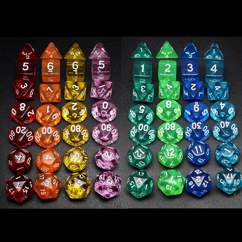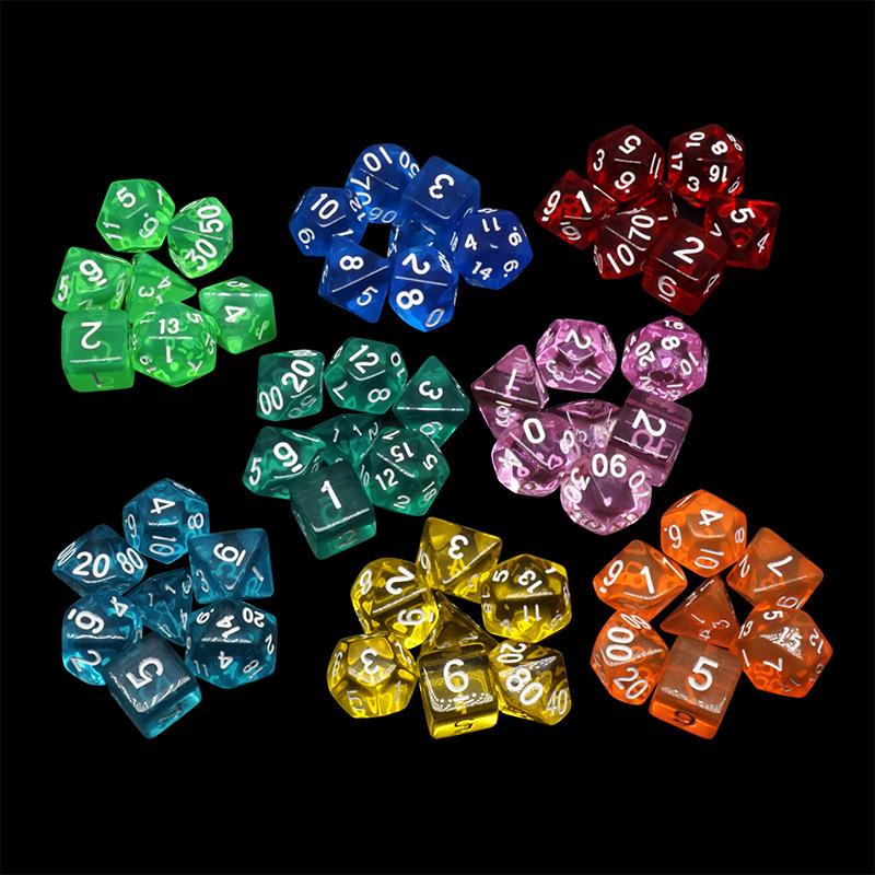 Set de dados de siete caras (serie transparente: color de los dados:Rojo, amarillo, azul, verde, morado, naranjaetc. colores.)