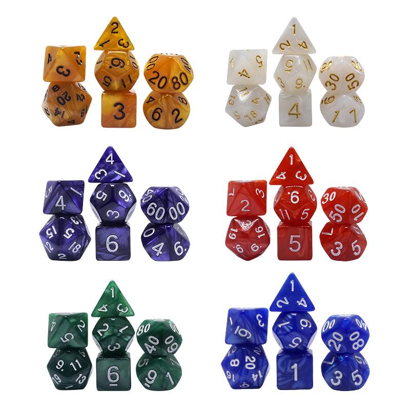 Juego de dados de siete caras serie color sólido: Color de los dados:Rojo, azul, amarillo, verde, morado, negro, blanco, naranja, etc......Opcional