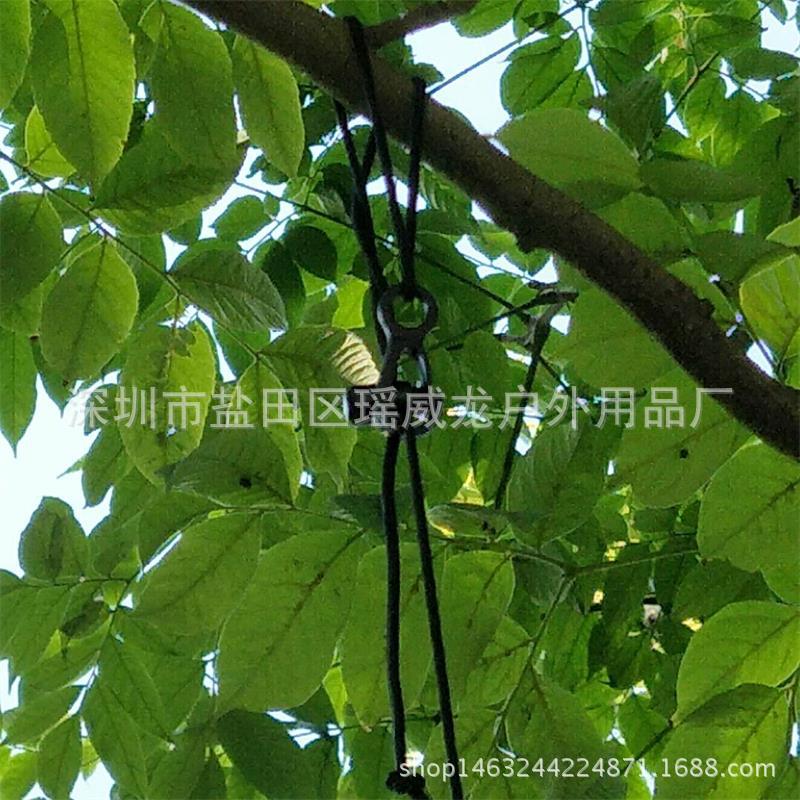 O topo é pendurado em um poste de árvore ou outro objeto com uma corda para abrir a barraca.
