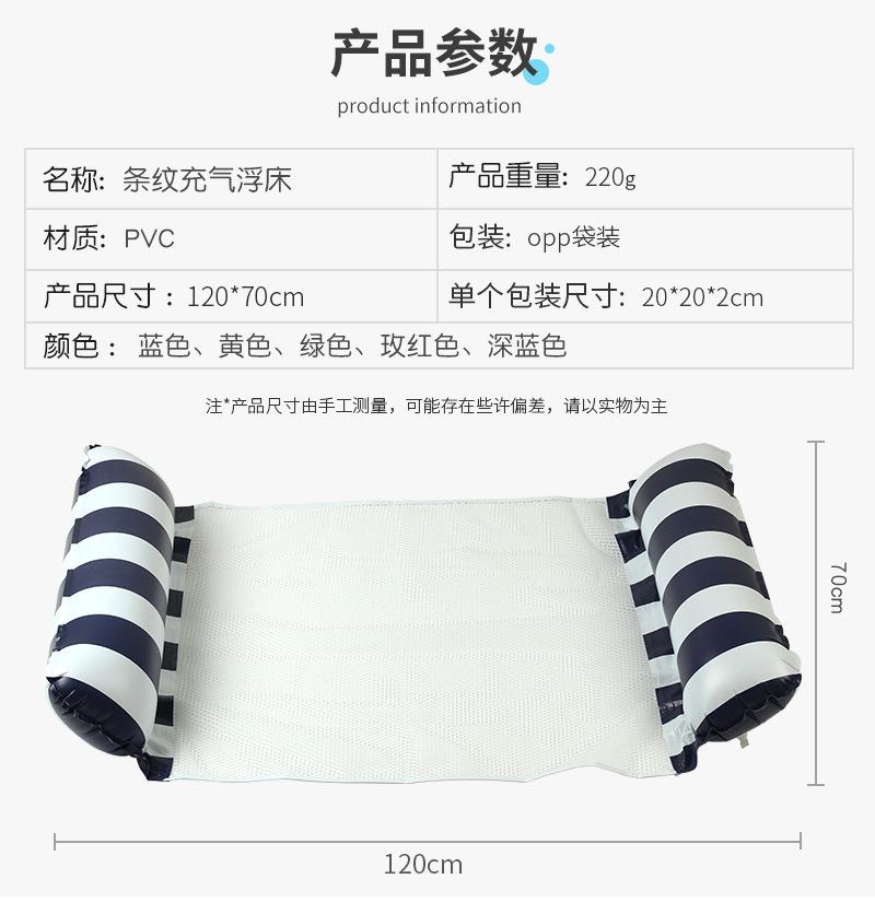 NOME | Nome: Rede de listras retas TAMANHO | Tamanho: 127 * 70 cm EMBALAGEM | Embalagem: saco OPP + cartão colorido PESO | Peso: 0,25 kg por peça, 26 kg para uma caixa inteira TAMANHO DA EMBALAGEM | Tamanho da embalagem única: 25 * 22 * 2CM MATERIAL | Material: PVC + malha de nylon COR | Cor: azul claro, vermelho rosa, amarelo, verde, laranja, azul escuro ESPECIFICAÇÕES | Tamanho da caixa: 46 * 43 * 36 CM QUANTIDADE | Quantidade da embalagem: 100PCS