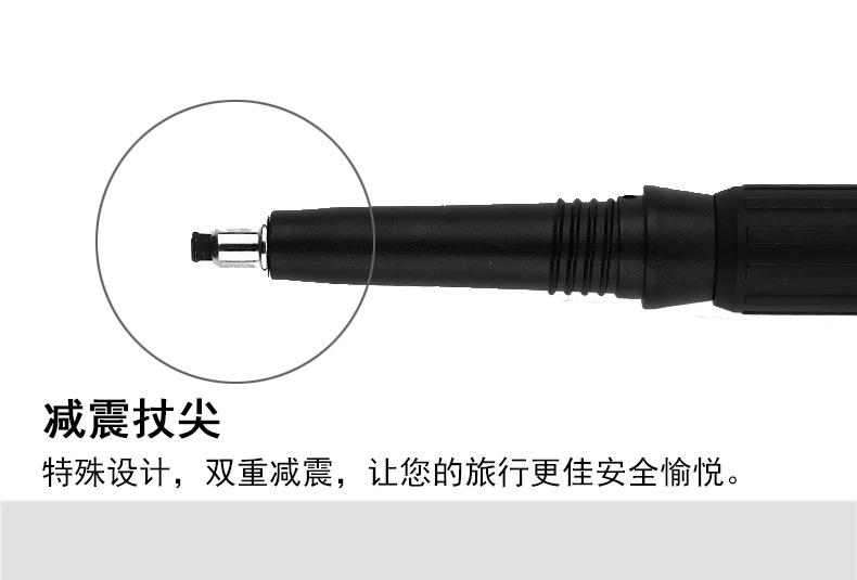 - La punta del bastón está hecha de una aleación de acero al manganeso, que es fuerte y resistente al desgaste. Está equipada con una cubierta protectora para evitar que la punta del bastón raye otros objetos al transportarlo.