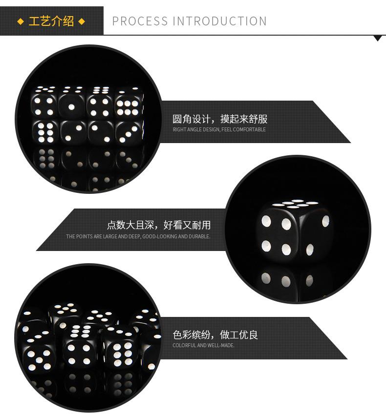 Nuestra fábrica se especializa en la fabricación de dados de alta gama de 8 mm a 100 mm con esquinas redondeadas, esquinas cuadradas y múltiples caras. Contamos con ingenieros de fabricación con más de diez años de experiencia en producción, tecnología de pulido de vanguardia y equipos de producción de última generación. Los dados de 8 mm a 25 mm se producen principalmente en plástico.