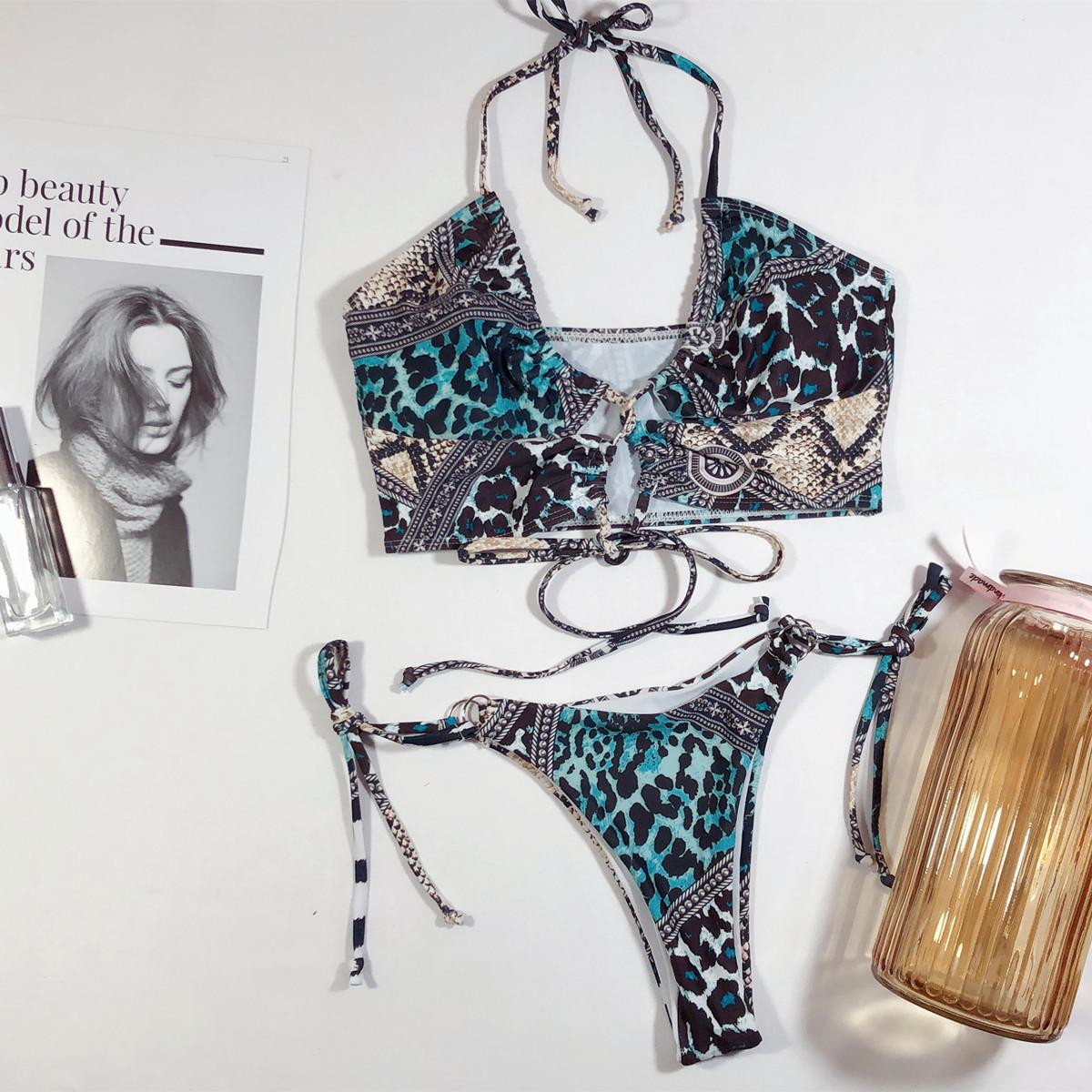 Estampado de leopardo europeo y americano con cuello halter venta caliente
