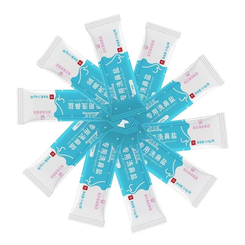 [Cómo usar 1. Vierta un paquete de 3.6 g de sal para lavado nasal en el irrigador sinusal de nuestra empresa, agregue agua purificada tibia a 37 °C (ligeramente caliente al tacto con los dedos) hasta la marca de 400 ml, tape la botella y agite bien. 2. Gire el irrigador boca abajo, inclínese hacia adelante, baje la cabeza, incline la cabeza hacia un lado 90 grados, apunte lentamente la boquilla hacia la fosa nasal superior, abra ligeramente la boca, respire con calma por la boca, apriete y suelte suavemente con las manos, y apriete repetidamente el centro de la botella rítmicamente para permitir que el líquido nasal se inyecte lentamente en la cavidad nasal (Nota: Asegúrese de apretar y soltar suavemente, no apriete hasta el fondo), de modo que pueda fluir por la otra fosa nasal, y enjuague alternativamente las cavidades nasales de ambos lados.