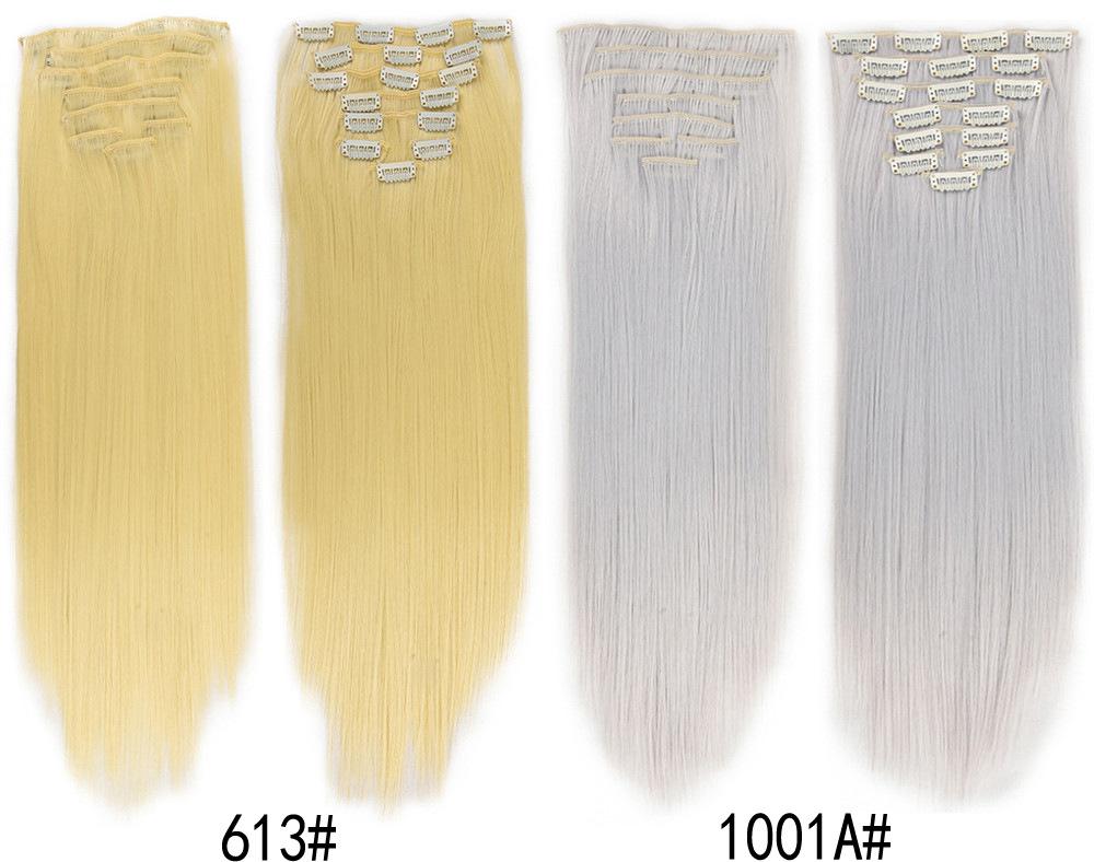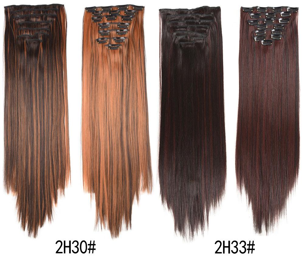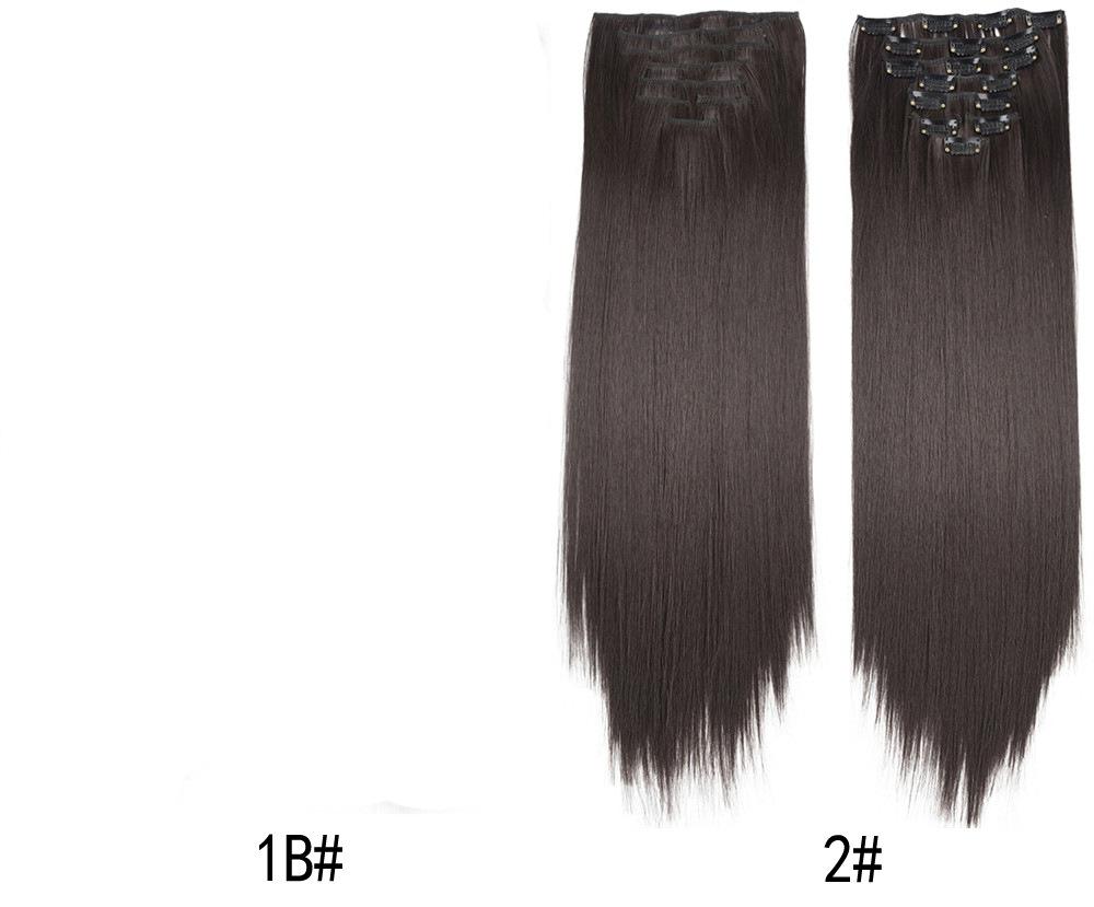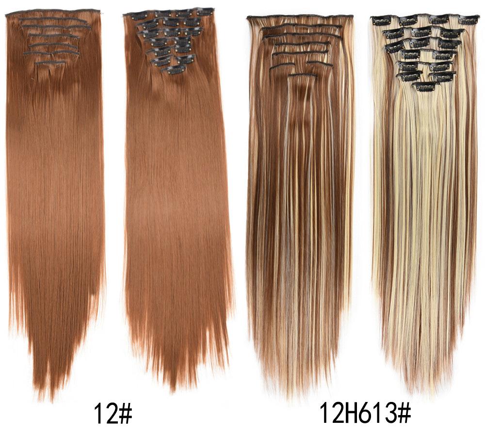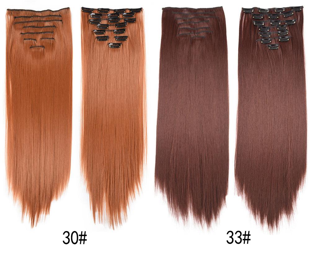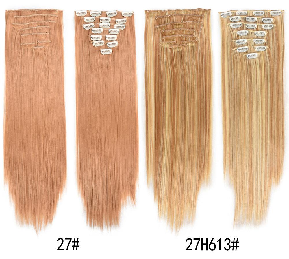 Nome do produto: Extensões de cabelo sintético para mulheres europeias e americanas, 17 clipes, conjunto de 7 peças, perucas de cabelo longo e liso, conjunto de 8 peças