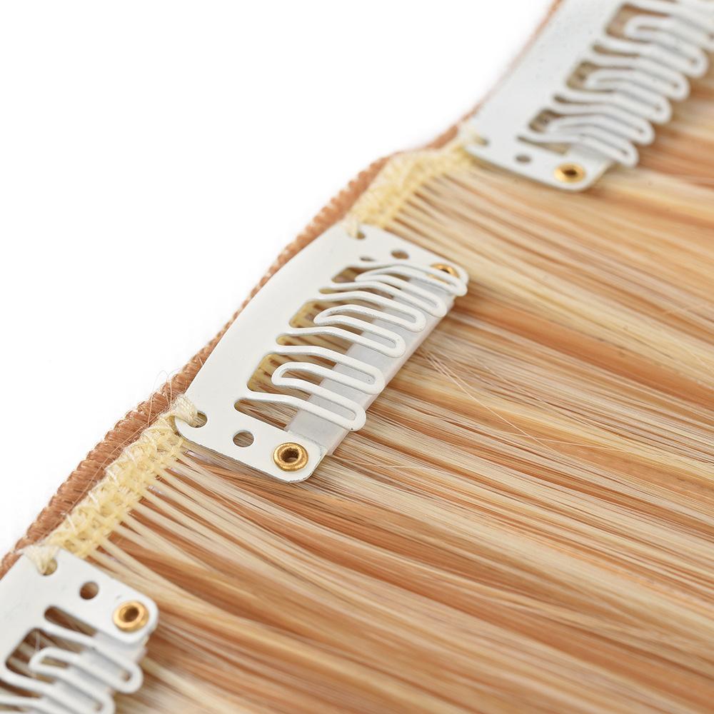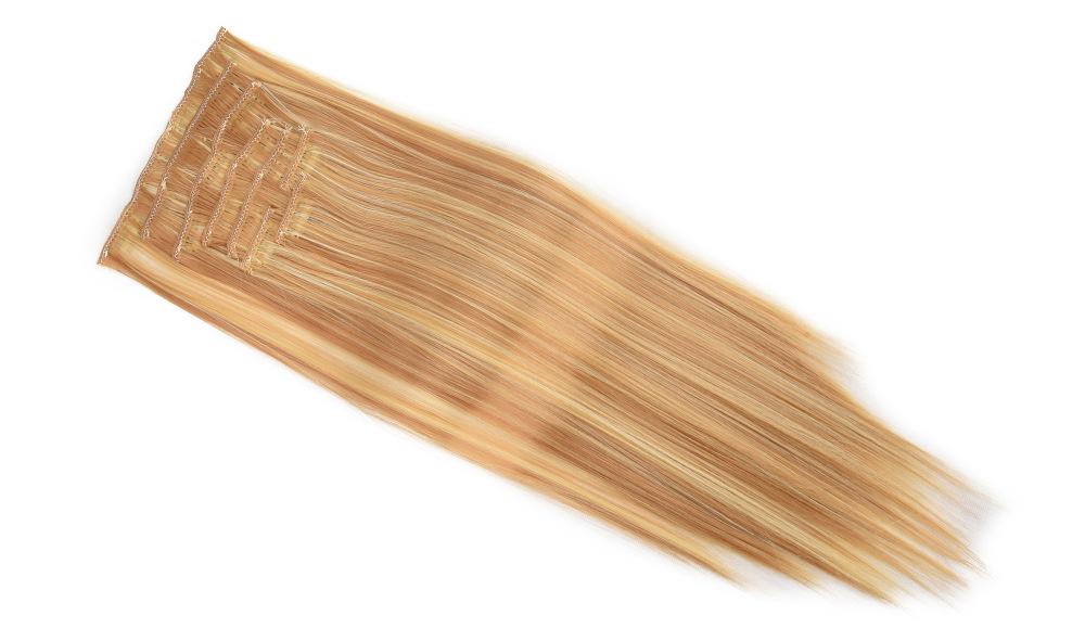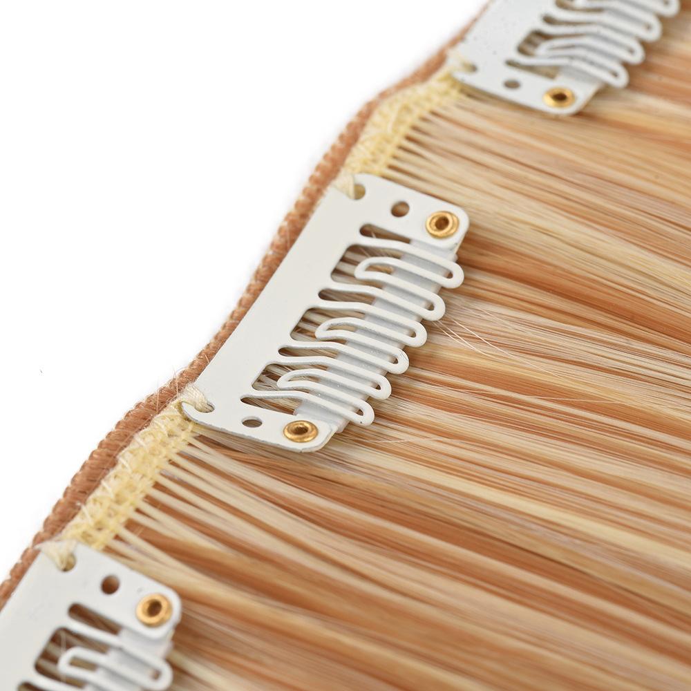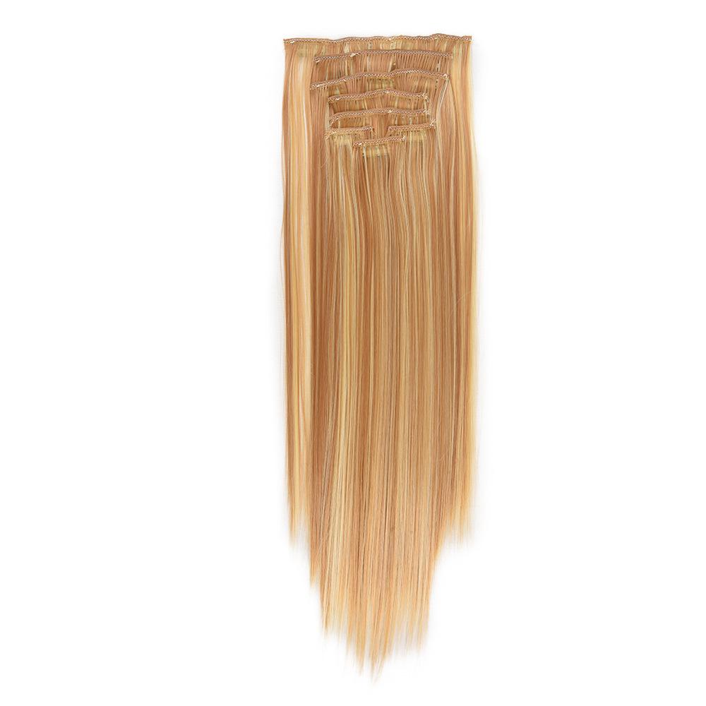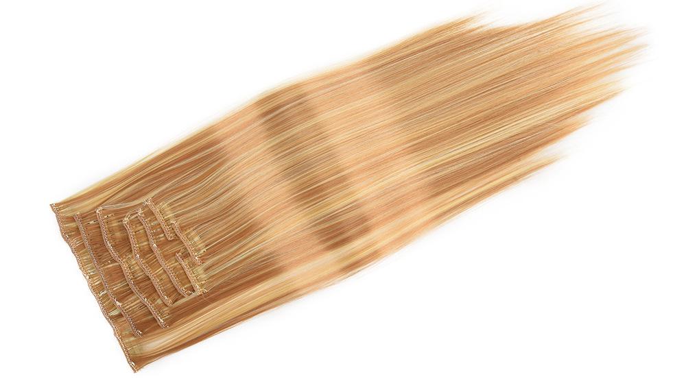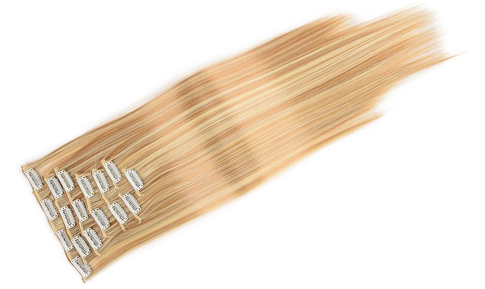 Nome do produto: Extensões de cabelo sintético para mulheres europeias e americanas, 17 clipes, conjunto de 7 peças, perucas de cabelo longo e liso, conjunto de 8 peças