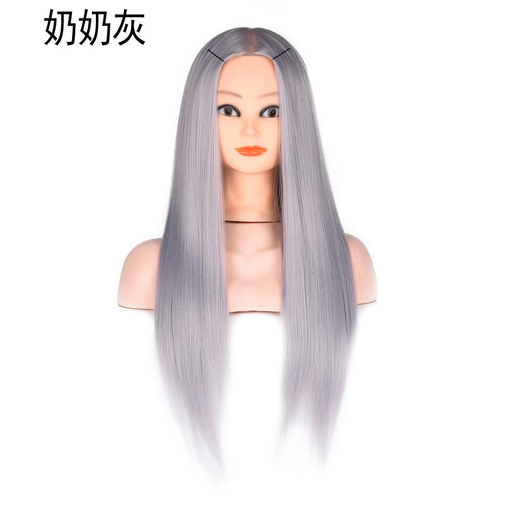Nome do produto: modelo de cabeça de trança de cabelo prática, modelo de cabeça de peruca cinza da avó, cabeça de ensino de haste de ondulação de cabeleireiro, modelo de cabeça de corte de maquiagem