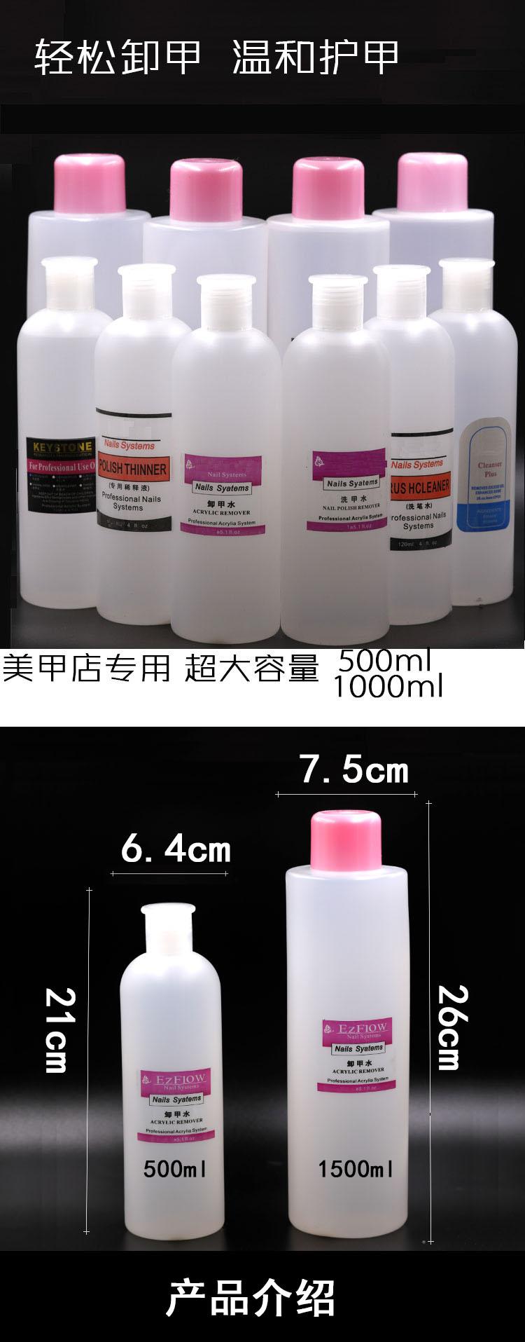 Cada botella es de aproximadamente 1000 ml y pesa alrededor de 1 kilogramo. Puede satisfacer las necesidades diarias de los salones de uñas. Es mucho más rentable que comprar una botella pequeña sola.