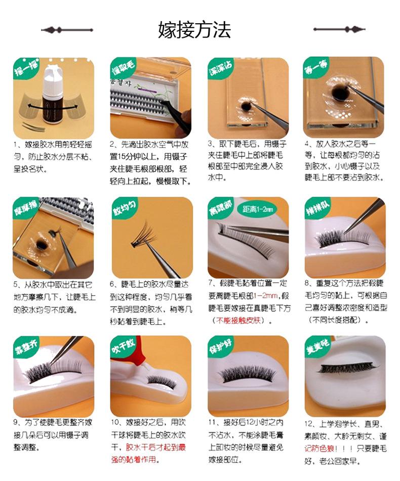 O Cola para cílios: Escolha uma com viscosidade moderada. Há também uma cola preta para cílios. Você não precisa se preocupar com resíduos brancos nas pálpebras após aplicá-lo. Parece muito natural.