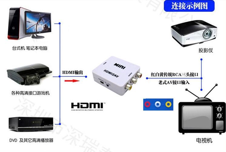 3) Indústria de nível civil: conecte-se a players de alta definição, DVDs, decodificadores, PS3, players Blu-ray XBOX360, etc., e conecte-se à interface AV de TVs comuns para visualização após a conversão