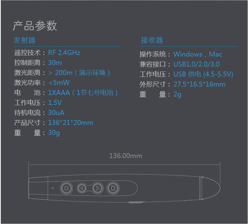3. Libre de interferencias entre múltiples usuarios:Cuenta con funciones de emparejamiento y bloqueo prioritario, está libre de interferencias y puede ser utilizado por varios usuarios simultáneamente. Puede utilizarse como ratón de control remoto inalámbrico y puntero láser convencional simultáneamente.