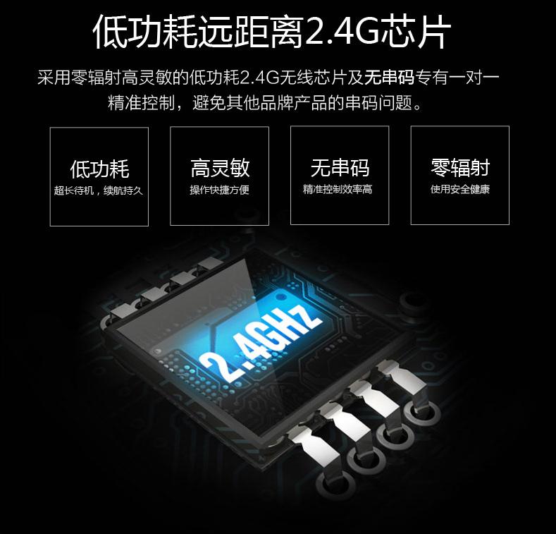 2. Larga distancia y sin directividad:Control remoto inalámbrico por radiofrecuencia de bajo consumo integrado. El método de RF se utiliza para solucionar el problema de directividad del método infrarrojo original.