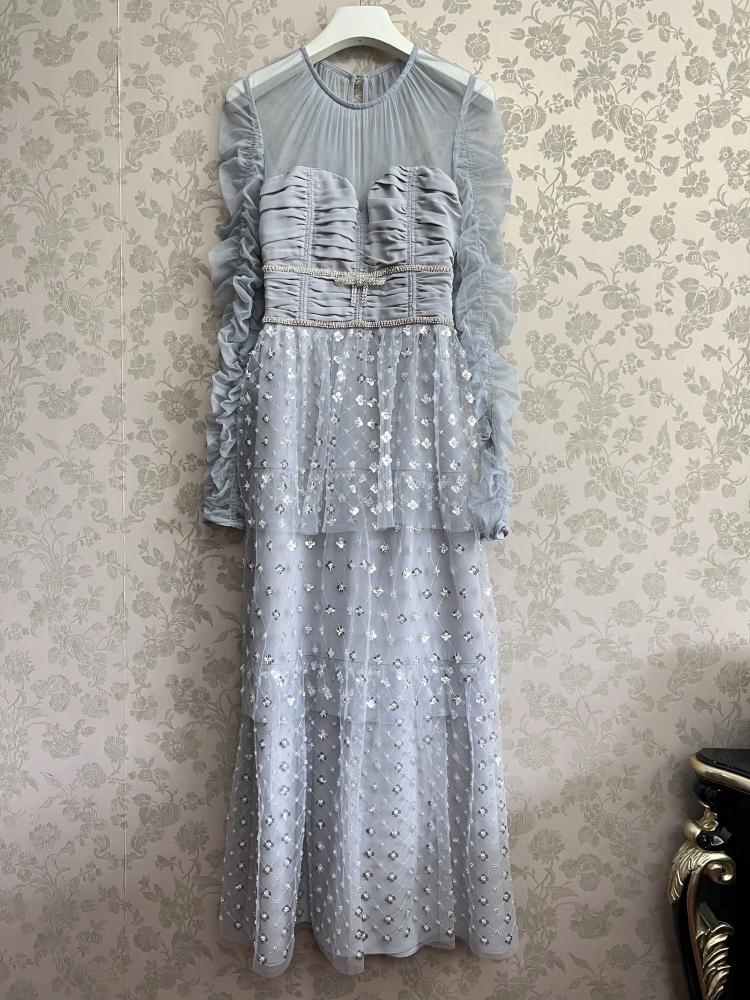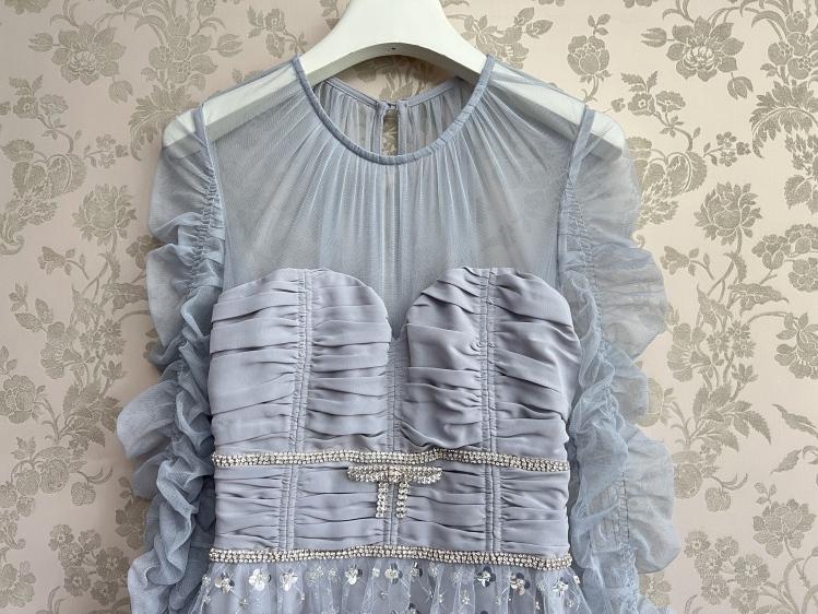 【Textura de la tela】Bordado de lentejuelas de mallaCremallera central trasera forrada(No identificado por una organización profesional, tenga cuidado si le importa)