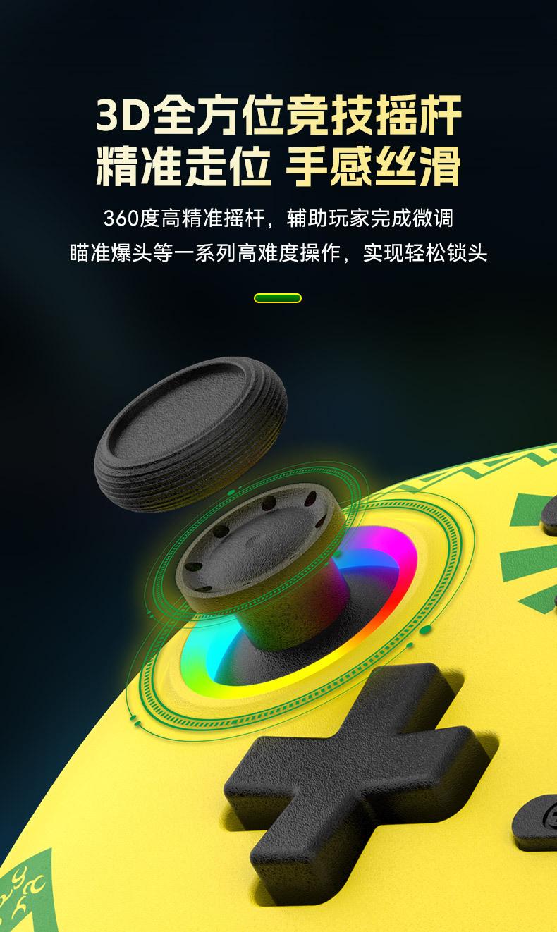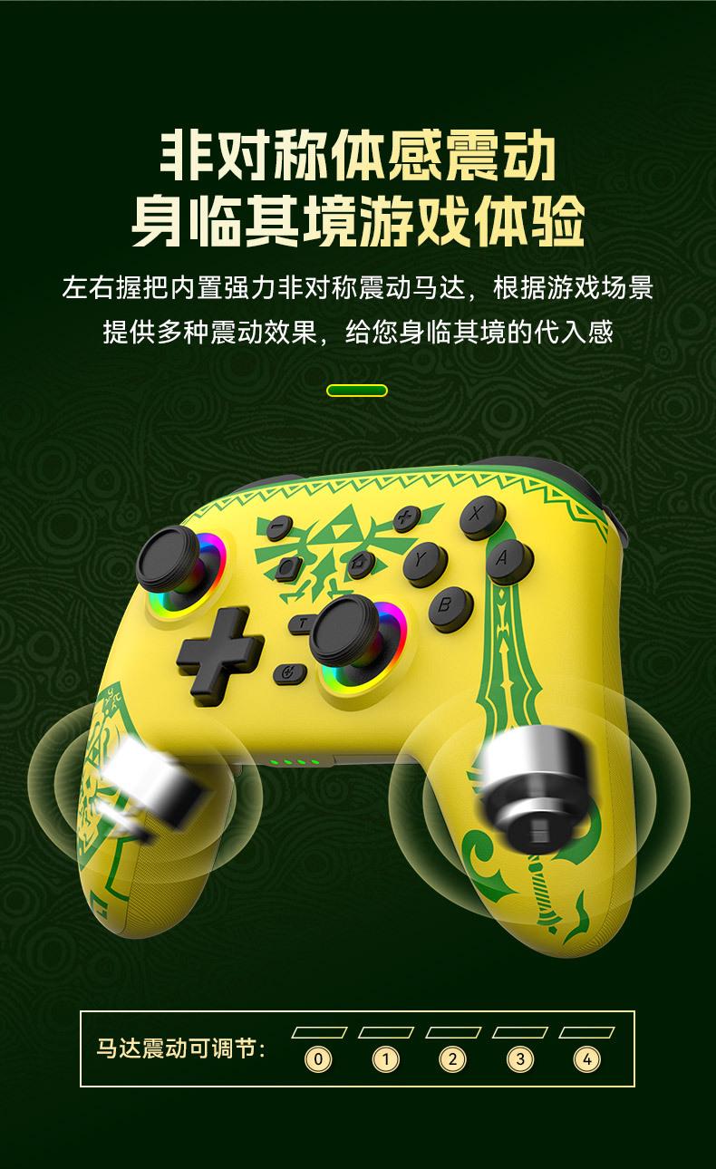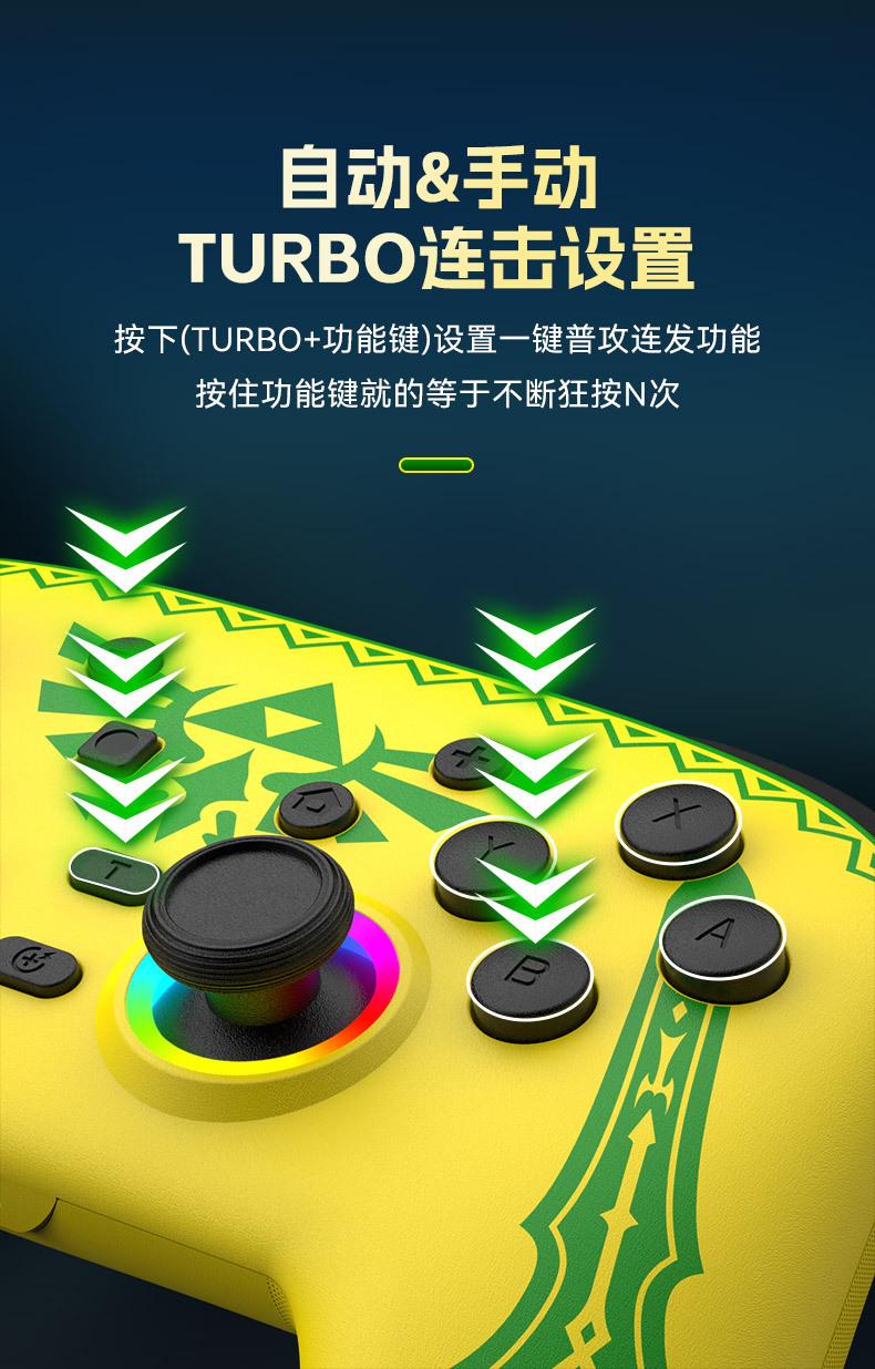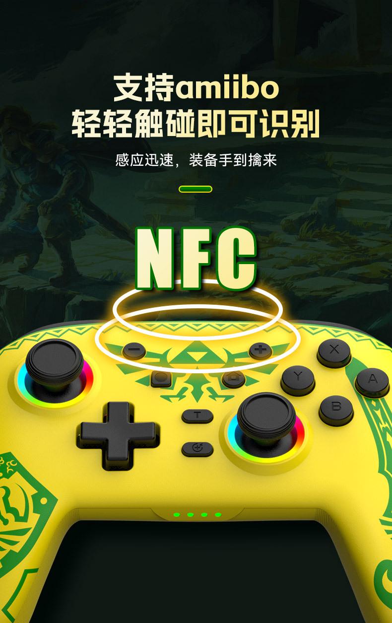 Funções: Suporte para detecção NFC, ativação do host do switch com um clique, programação macro, somatossensorial de seis eixos, motores de vibração dupla, explosão automática, efeitos de iluminação RGB.