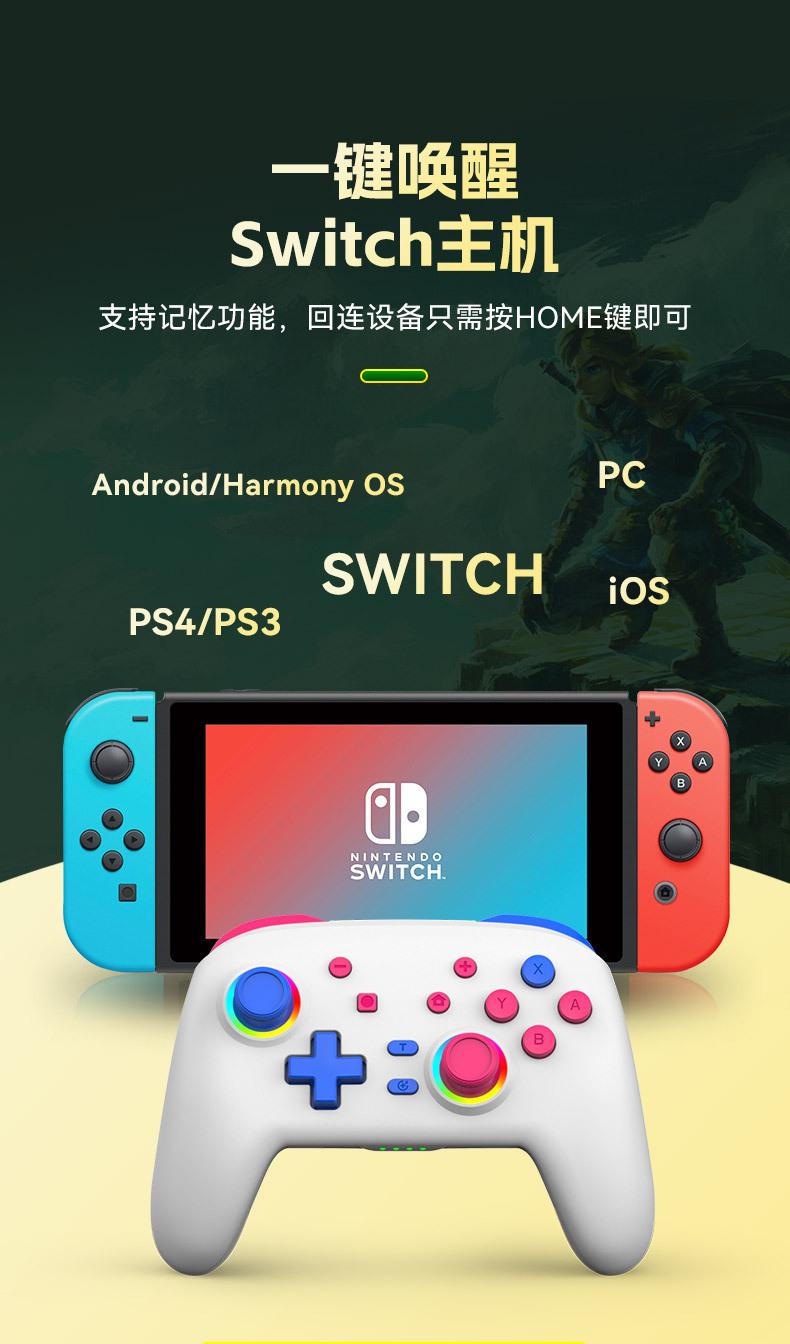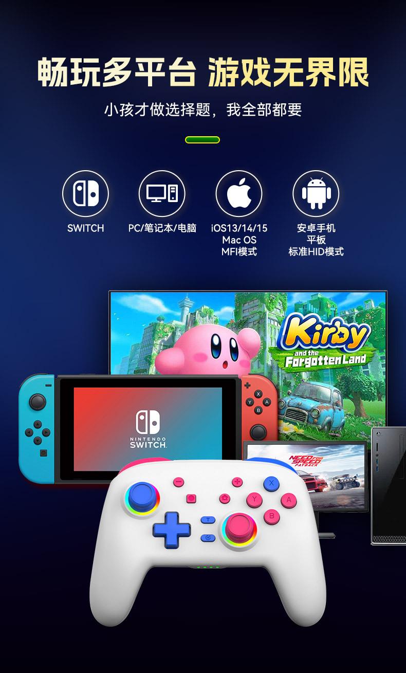 2. O controlador suporta vários jogos em consoles Switch, computadores PC e modo padrão Android HID e suporta jogos MFI em telefones Apple.