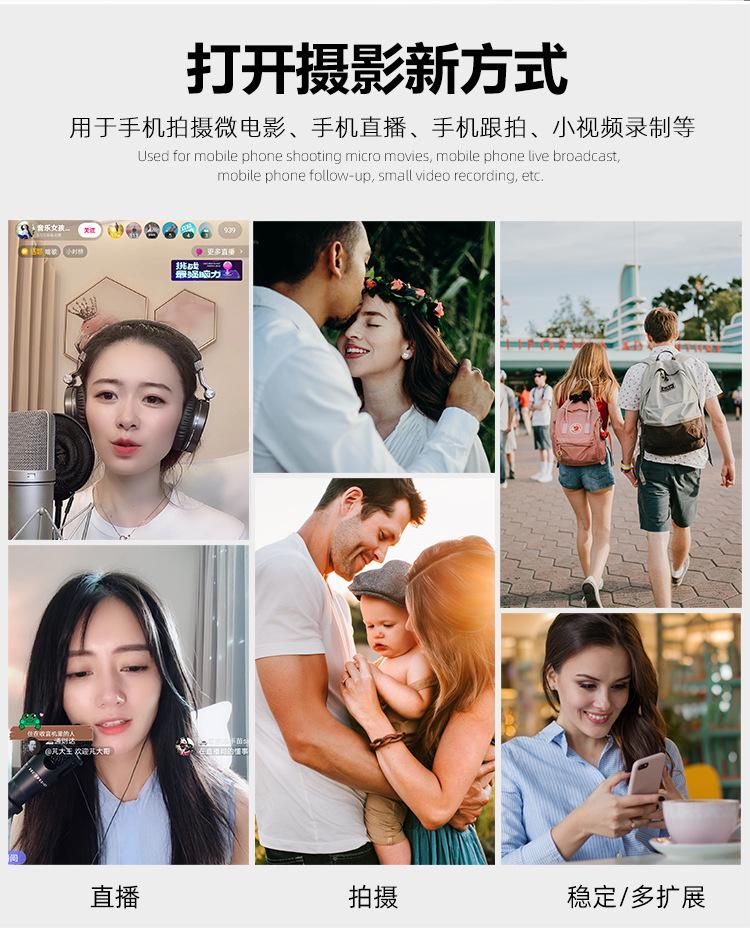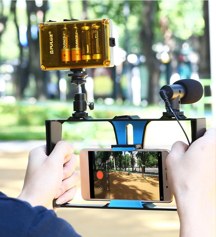 PULUZ 2 em 1 transmissão ao vivo de vídeo para smartphone + kits de microfone para iPhone, Galaxy, Huawei, Xiaomi, HTC, LG, Google e outros smartphones